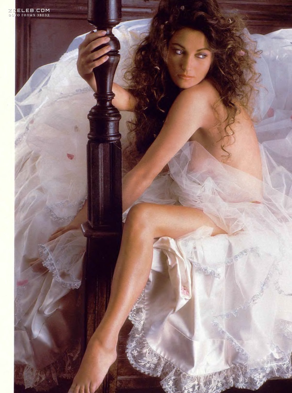 Эротичная Джейн Сеймур в шикарном наряде снялась для американского журнала Playboy в январе 1987 года. Обнажённая красотка облачилась в нарядное полупрозрачное платье. Она - словно принцесса из волшебной краски. Мечта поэта.