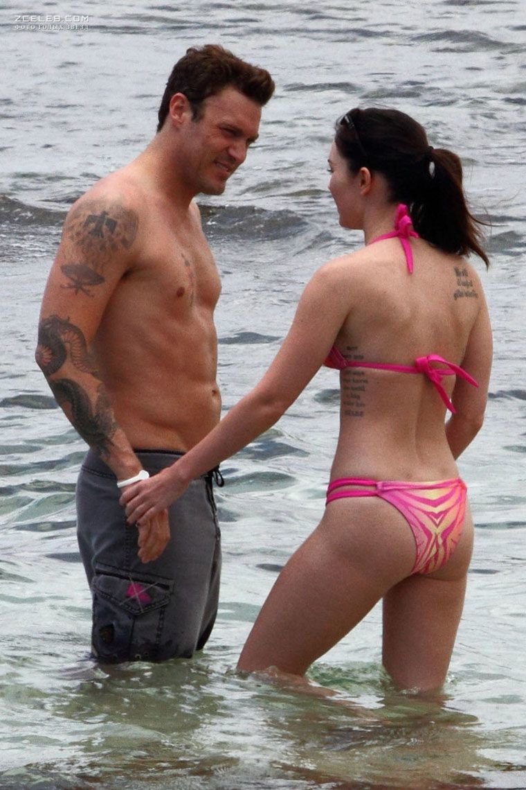Аппетитная Меган Фокс в голубых трусах на пляже в Мауи, 30.05.2010