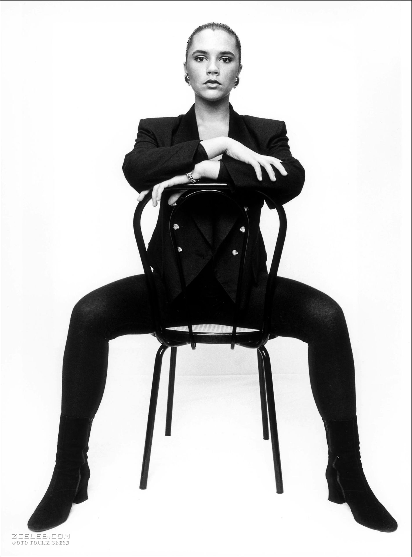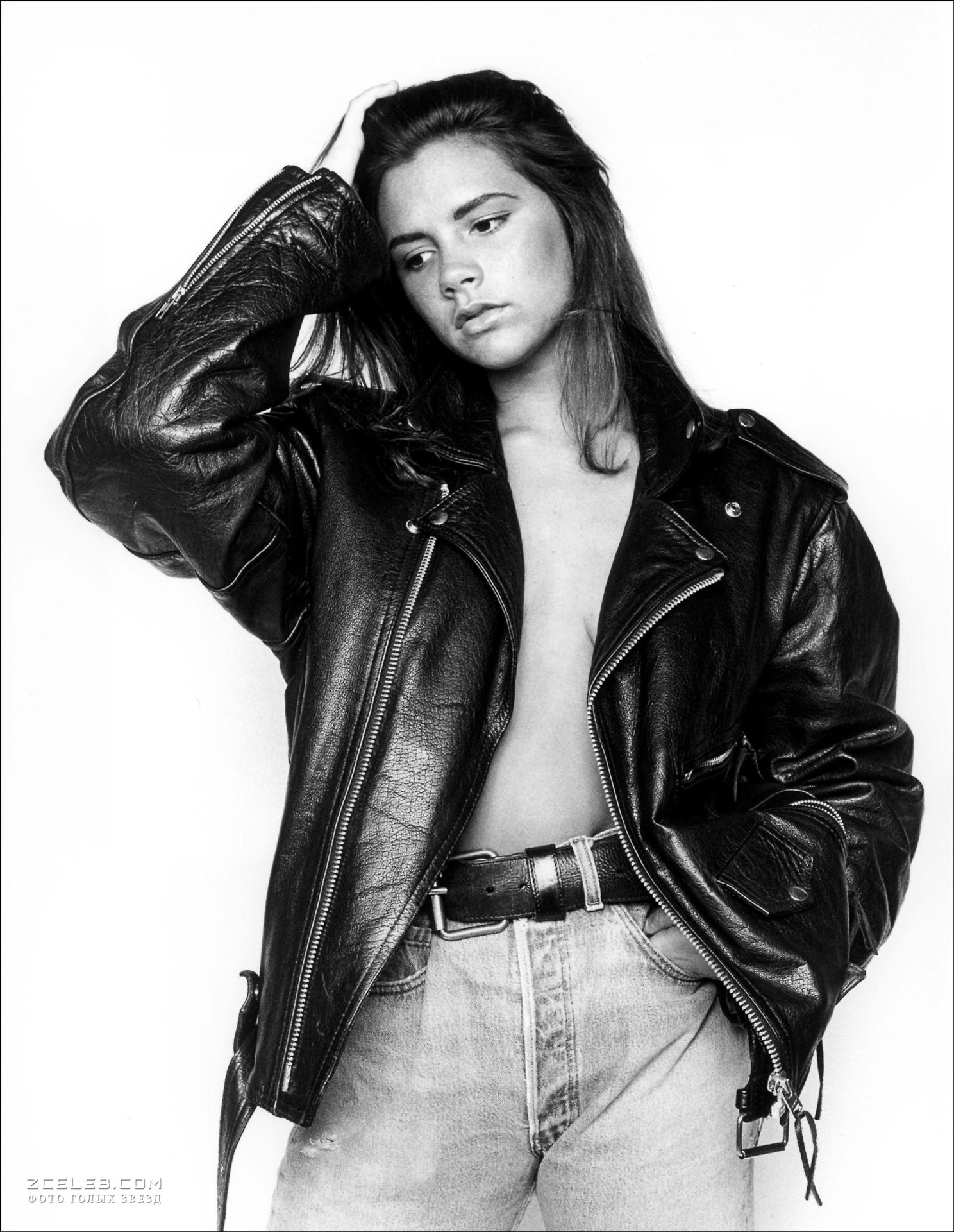 Секси Виктория Бекхэм в черно-белой фотосессии Geoff Marchant 1992 года.