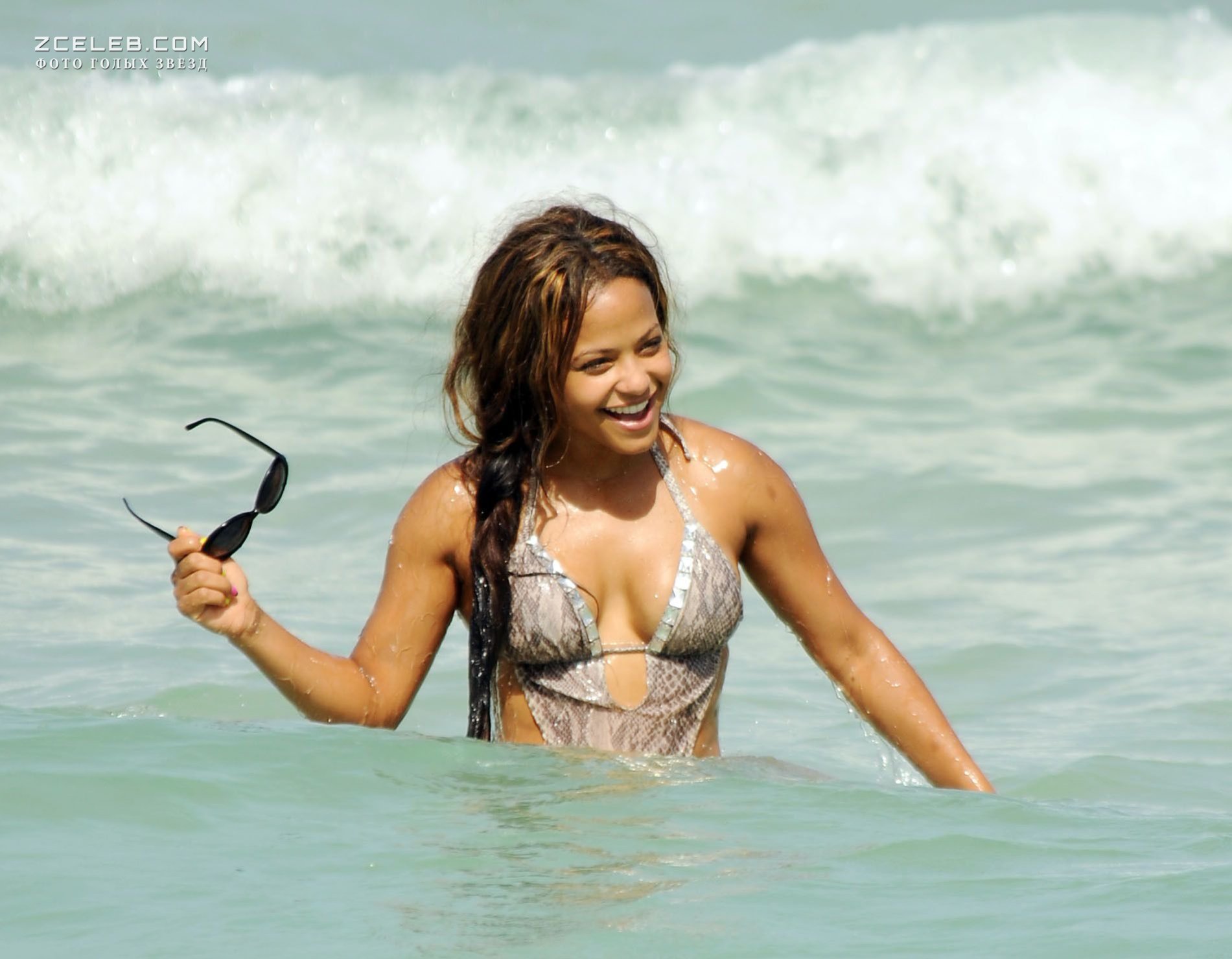 Голый сосок Кристины Милиан на пляже в Майами, 19.07.2012