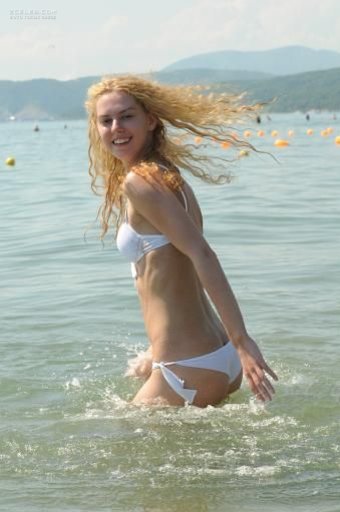 Сексуальная Лянка Грыу в белом купальнике на отдыхе.