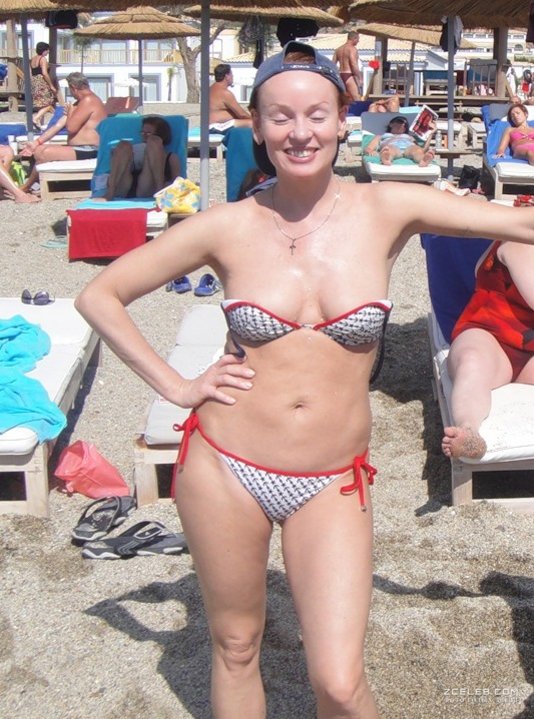 Озорная Жанна Эппле загорает в соблазнительном бикини на острове Кос 22 сентября 2011 года. Кажется, что верх купальника вот-вот совсем спадёт, приоткрыв нам всю прелесть её груди.