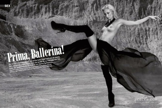 Карина Саркисова обнажилась для журнала Wiener в сентябре 2010 года, закружившись в страстном танце. Упругие сосочки и аппетитная попка такой балерины способны свести с ума превратить в фанатов танцев даже далёких от этого вида искусства людей.
