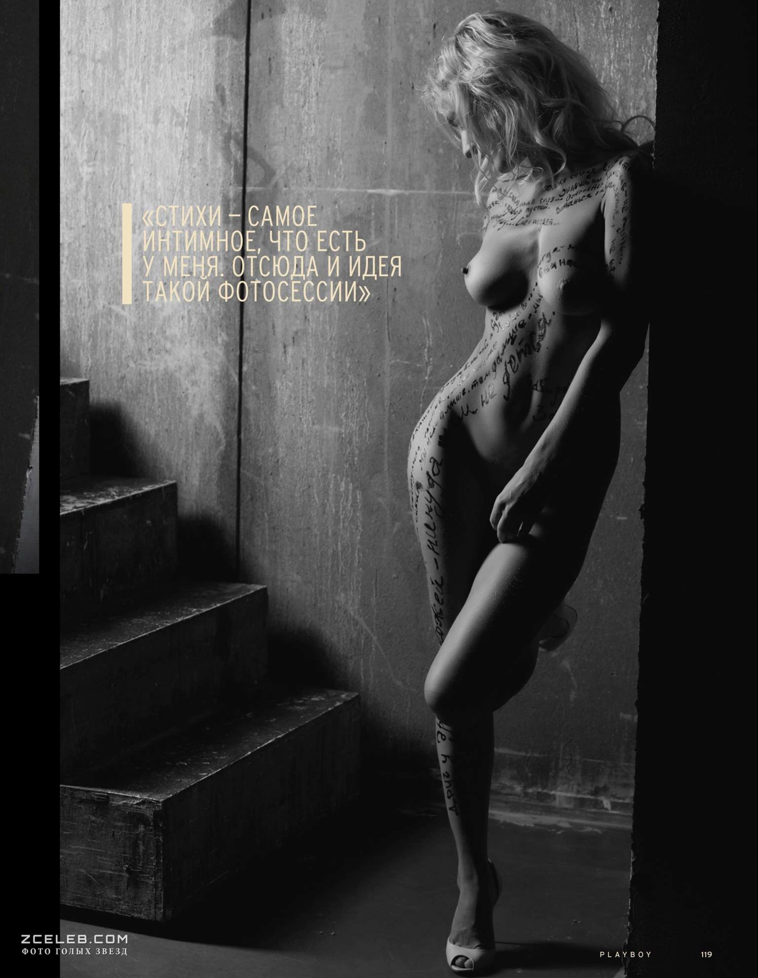 Обнажённая Катя Гордон предстала в очень таинственном образе в фотосессии для журнала Playboy в ноябре 2014 года. Её изящные изгибы тела украшают тайные письмена, разгадав которые, возможно, вы получите ключик к сердцу девушки.