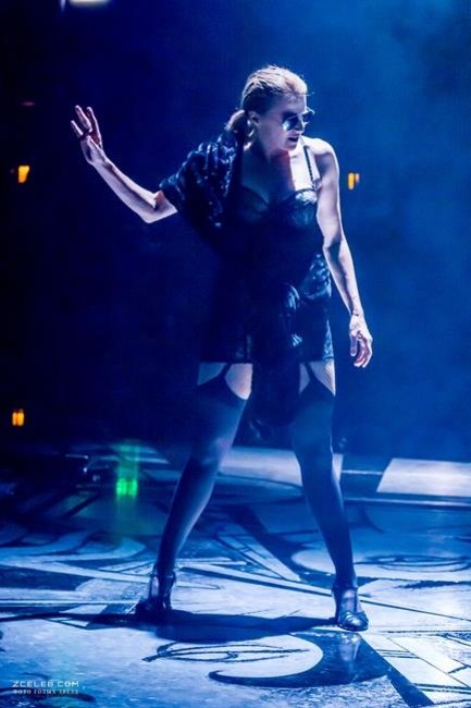Эротический наряд Люси Лоулесс в мюзикле Chicago, 2013