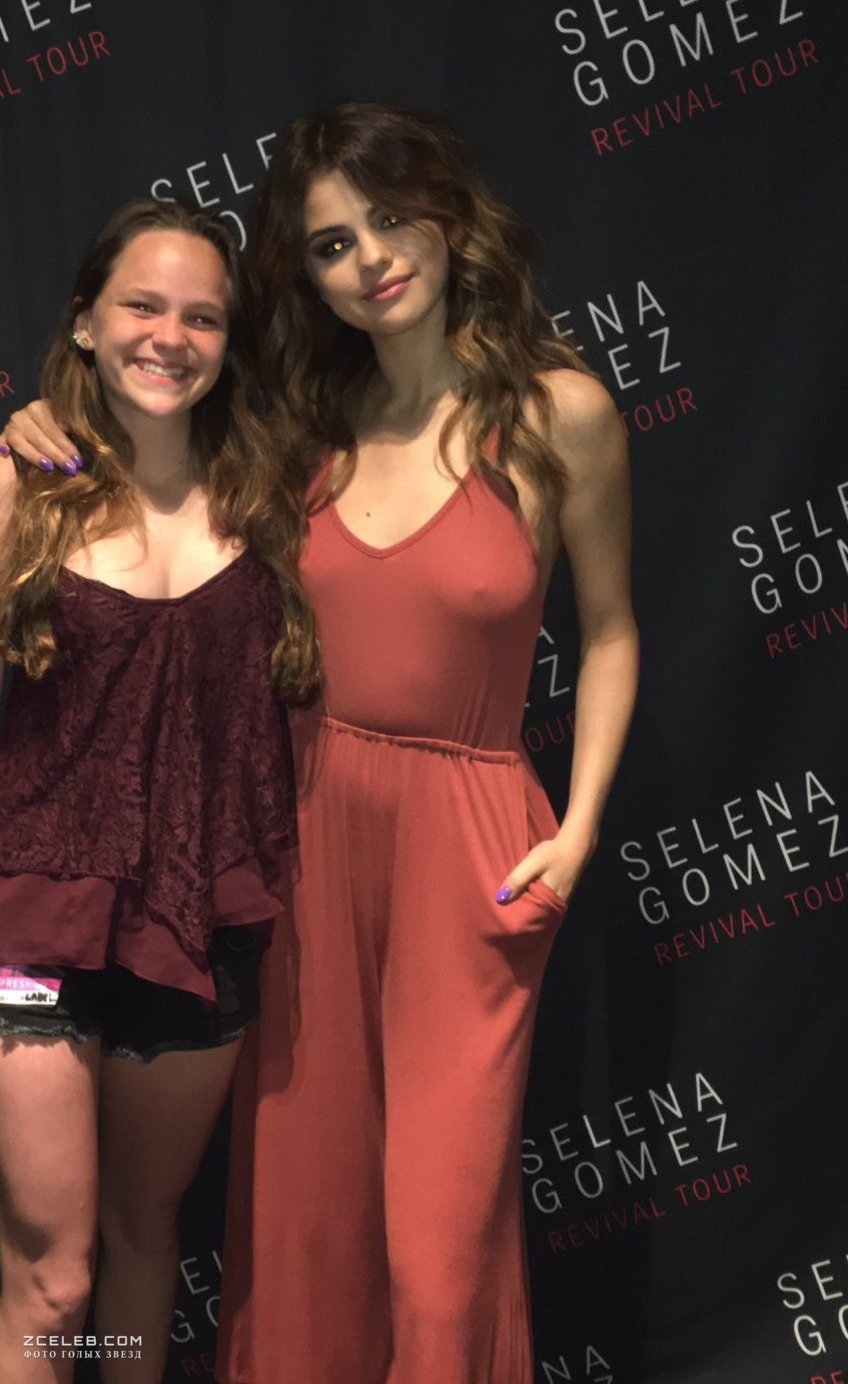 Селена Гомес - девушка очень дружелюбная и приветливая, с радостью встречается со своими фанатами и делает с ними множество снимков. Поклонники певицы и актрисы должны быть в восторге, ведь теперь у них на память останутся чудесные кадры с аппетитными сосочками красотки на встрече в Торонто 25 мая 2016 года.