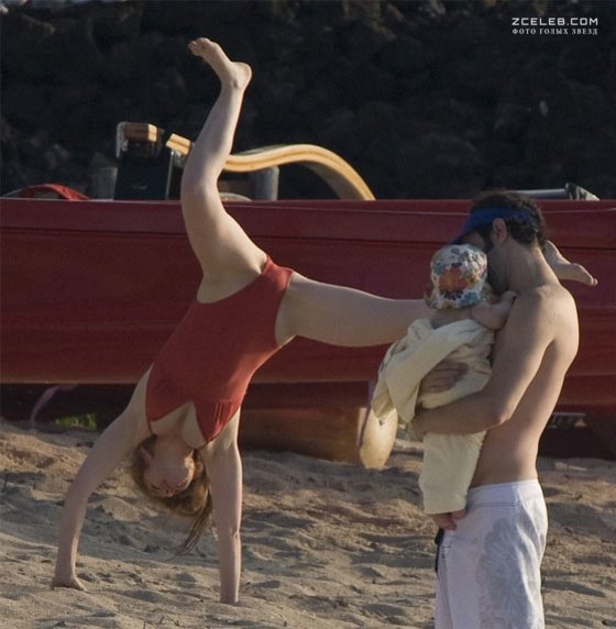 Красотка Айла Фишер в купальнике отдыхает с семьёй на Гавайях в 2008 году. Слитный купальник также может смотреться весьма сексуально, если он алого цвета и так привлекательно облегает фигуру.