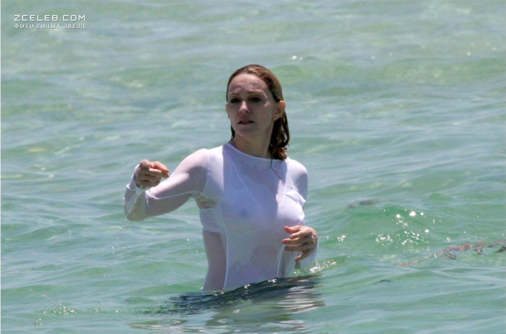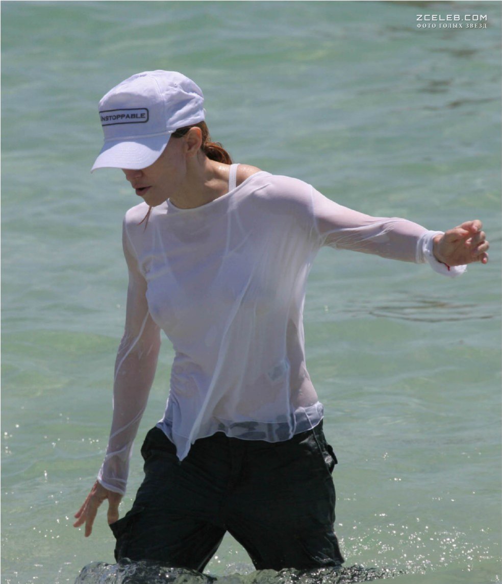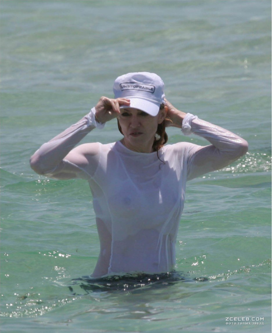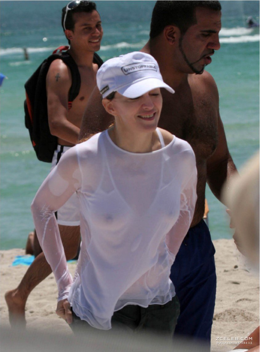 У Мадонны видно грудь сквозь мокрую одежду на пляже