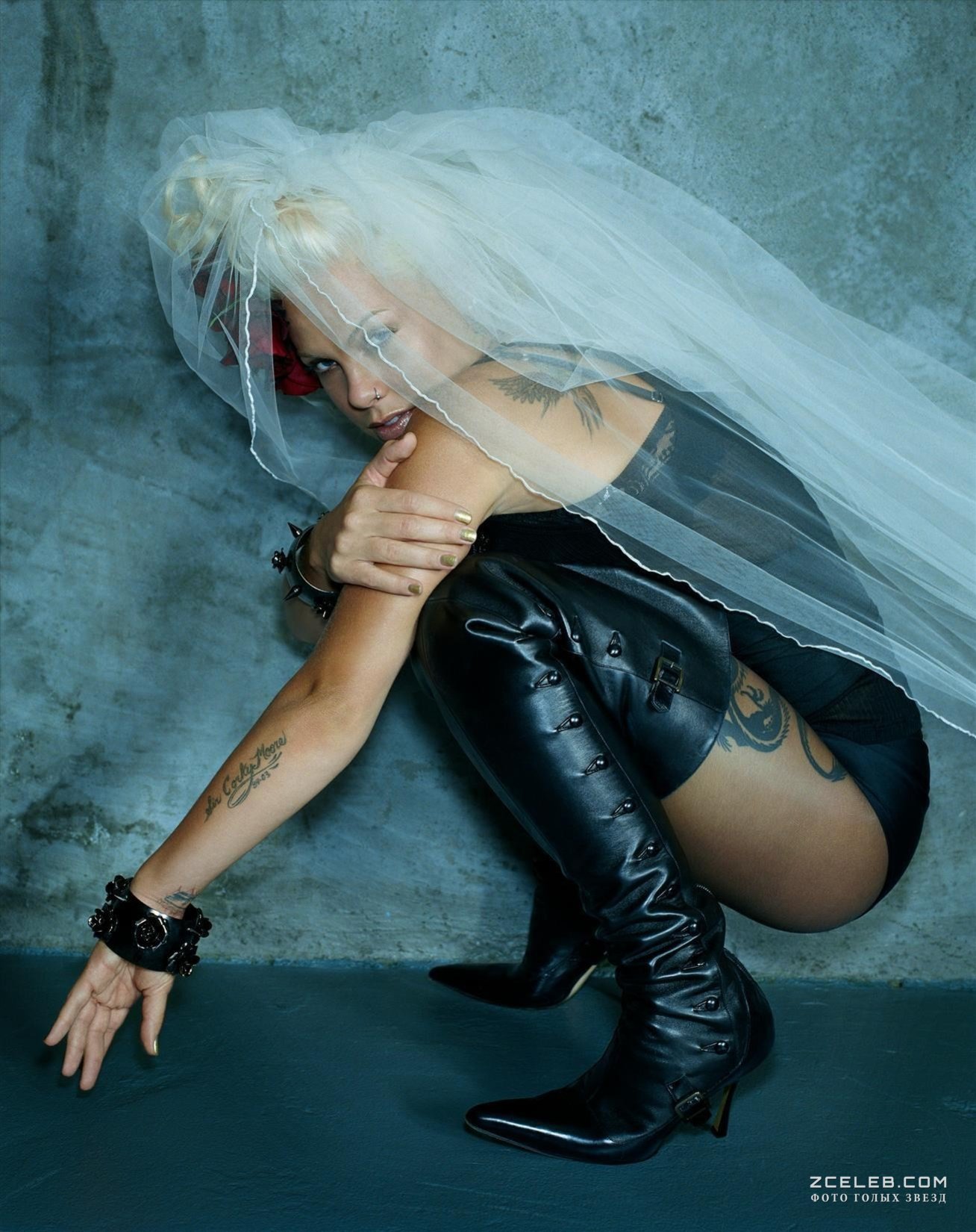 Пинк снялась в кожаном возбуждающем наряде для журнала Blender в 2006 году. Готовы ли вы иметь дело с такой брутальной невестой? Ведь за слоем блестящей одежды из кожи, таится чуткая обнажённая душа.