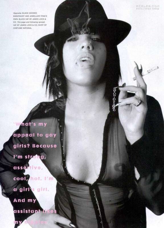 Пинк снялась в откровенной прозрачной блузке для журнала The Face в декабре 2002 года, засветив таким образом свои сочные сосочки. Певица уверенна в себе и завлекает всех безумно сексуальным взглядом.
