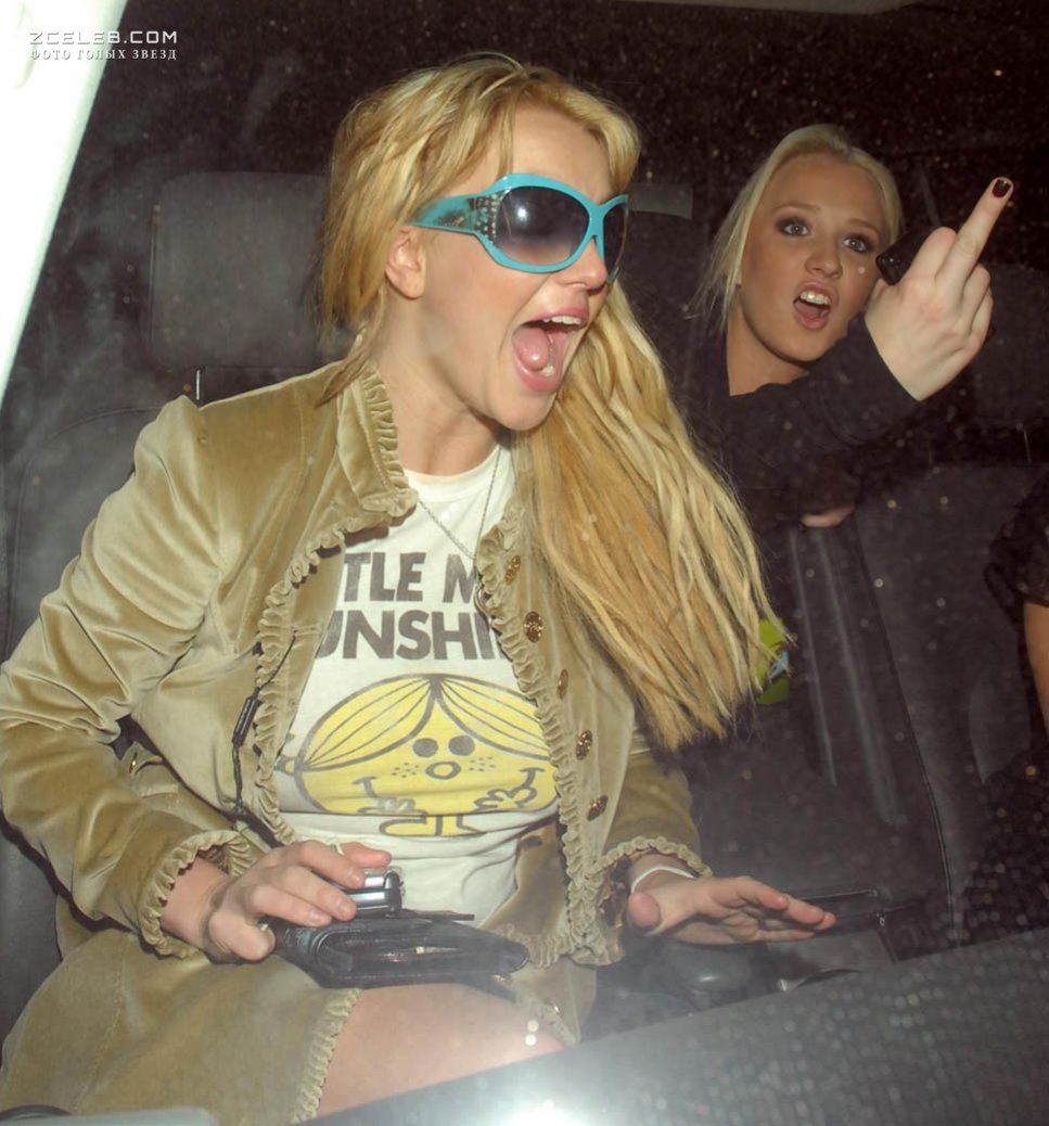 Ненасытная Бритни Спирс без трусиков гуляет в компании подруг. Девушка так активно двигается и не может сидеть на месте, что её киска очень быстро оказалась на виду.