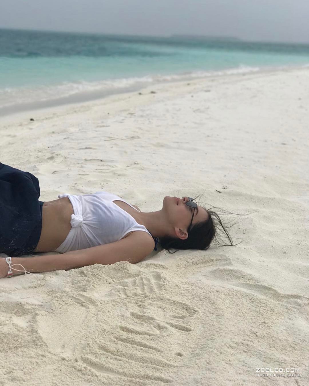 Эротичная Елена Темникова в прозрачной мокрой майке на Мальдивах, 2017