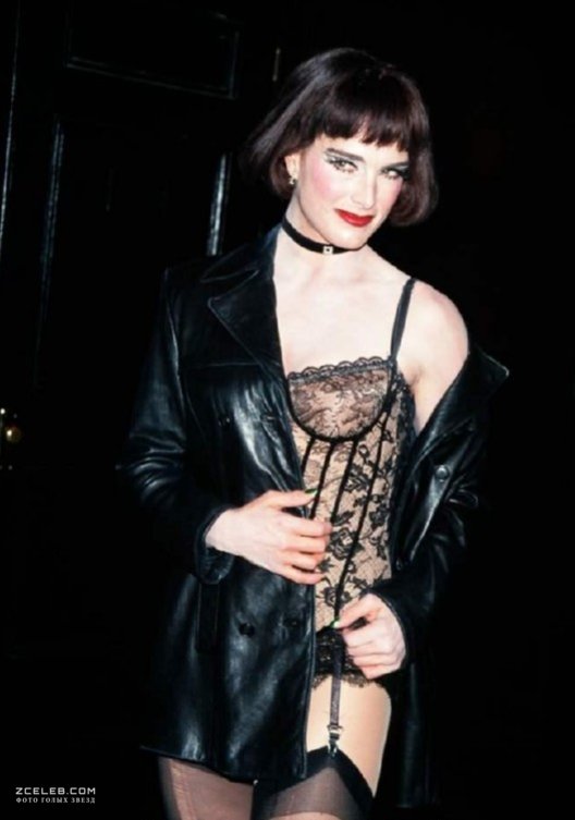 Красотка Брук Шилдс в прозрачном белье раздвигает ножки