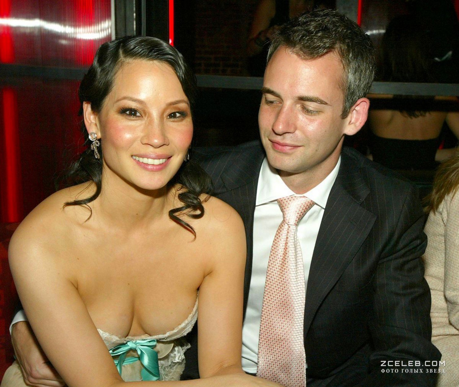 Открытое декольте Люси Лью в красивом наряде явно мешает её другу сконцентрироваться и смотреть ей в глаза. Но его легко понять.