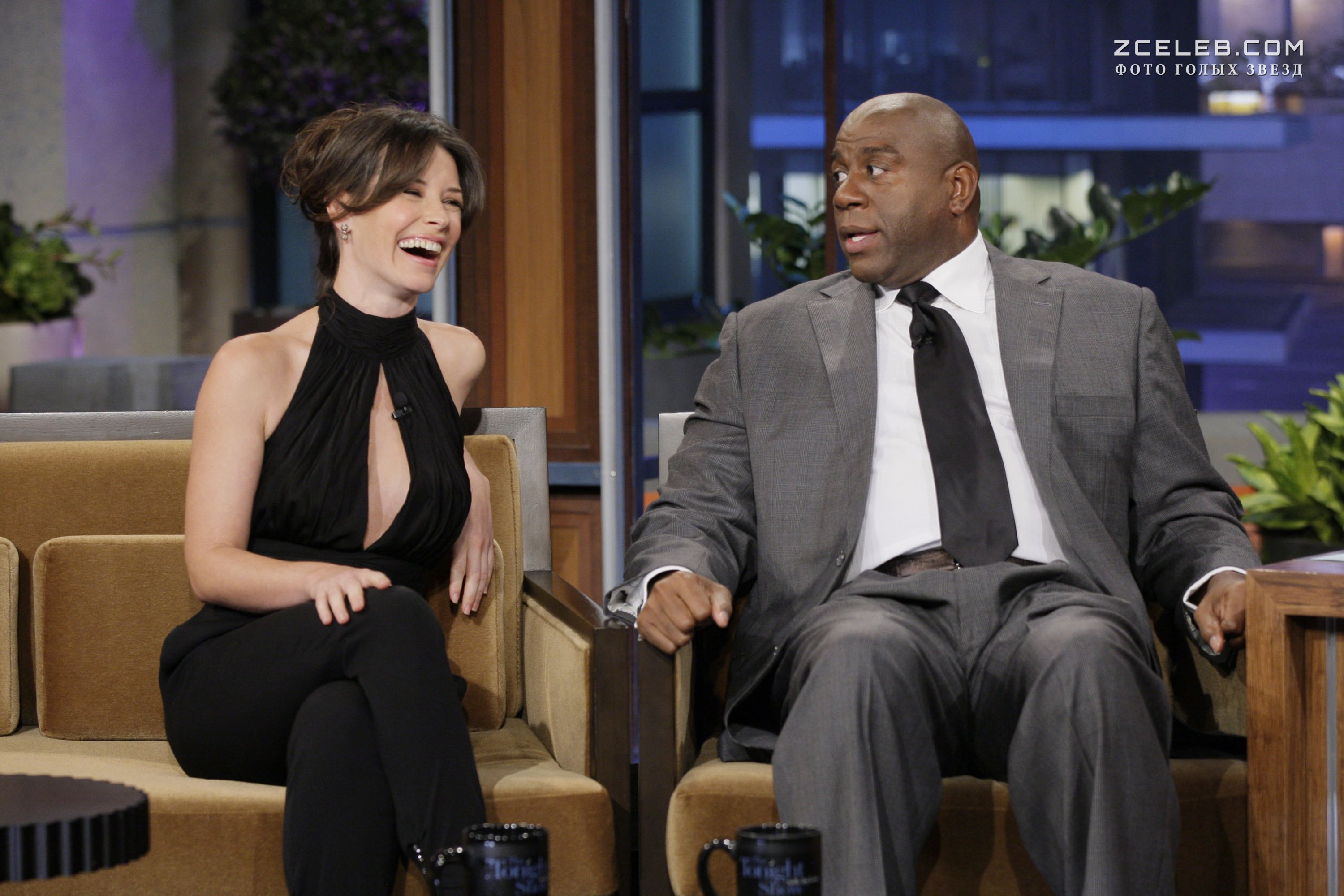 Эванджелина Лилли появилась в наряде с эротическим декольте на The Tonight Show with Jay Leno в 2011 году. Классическое сочетание строгого стиля и откровенных деталей сыграло девушке на руку.