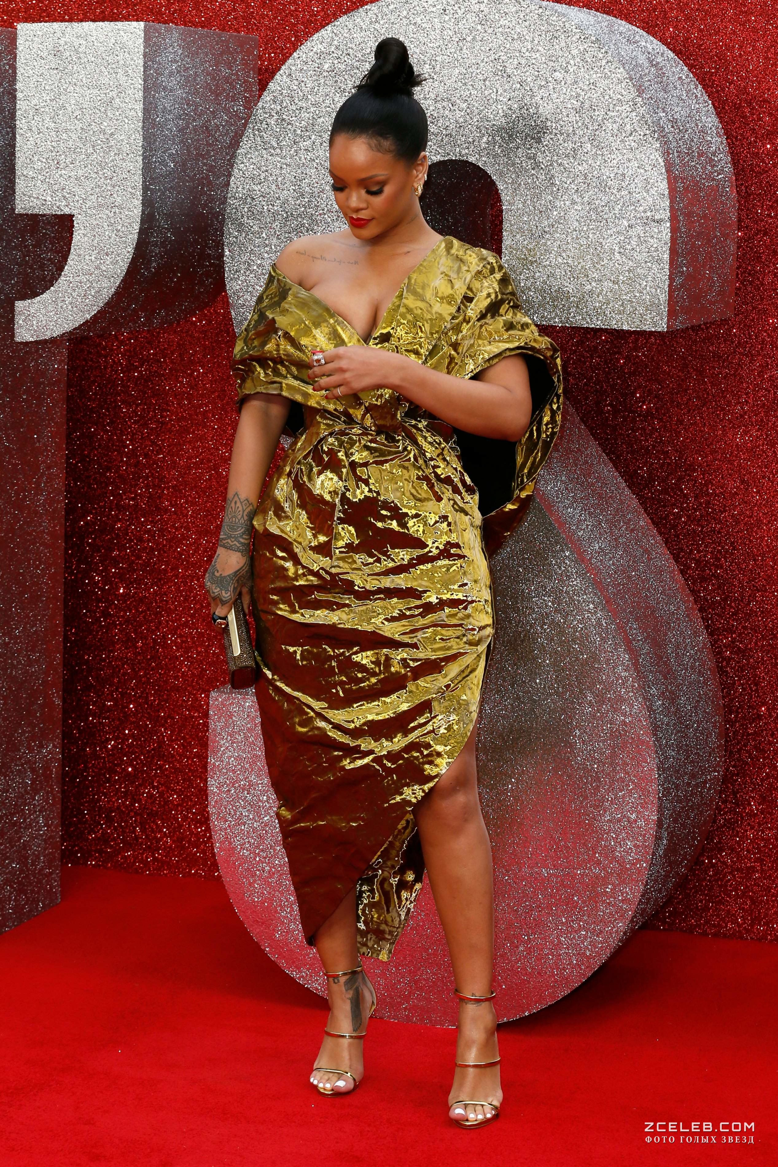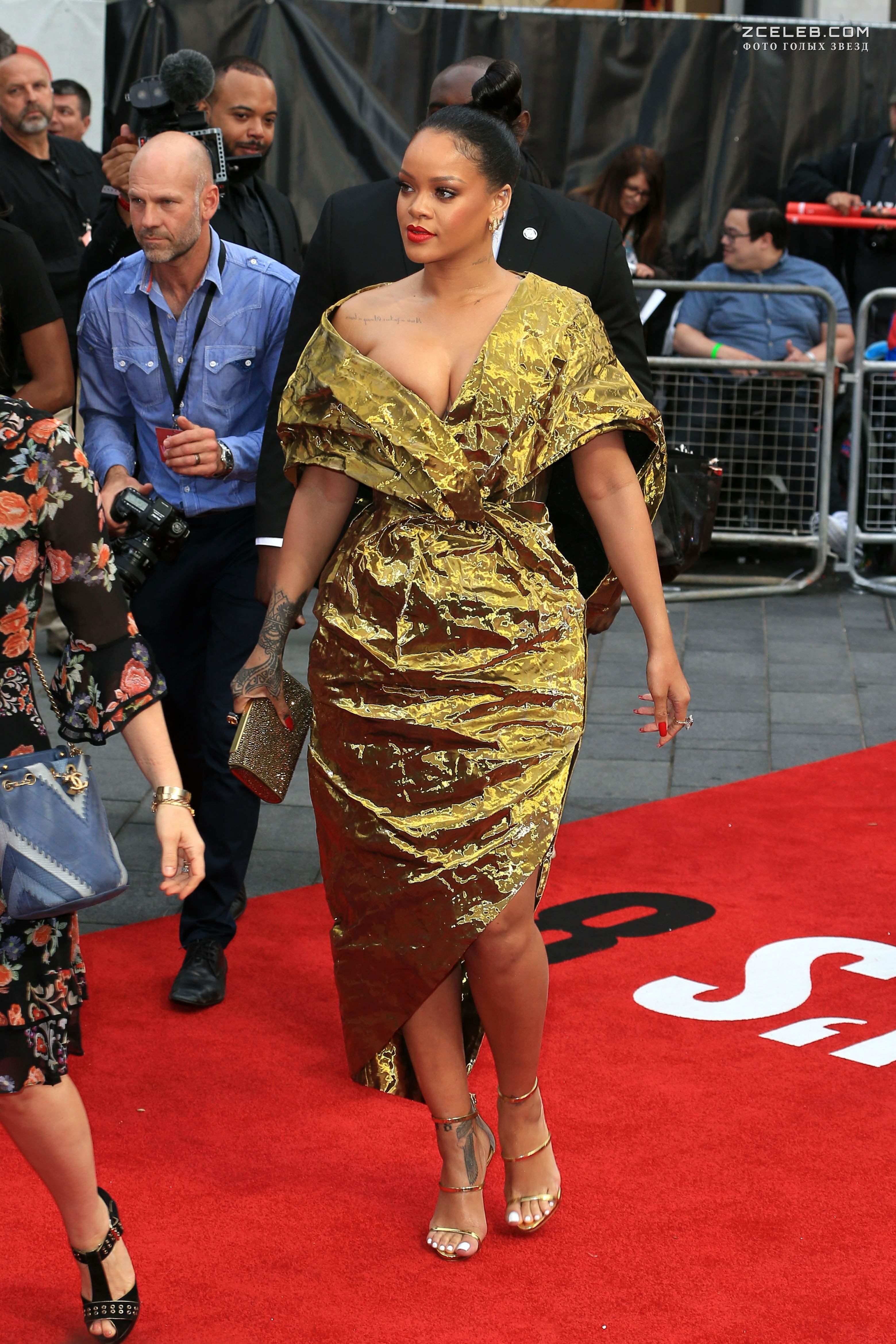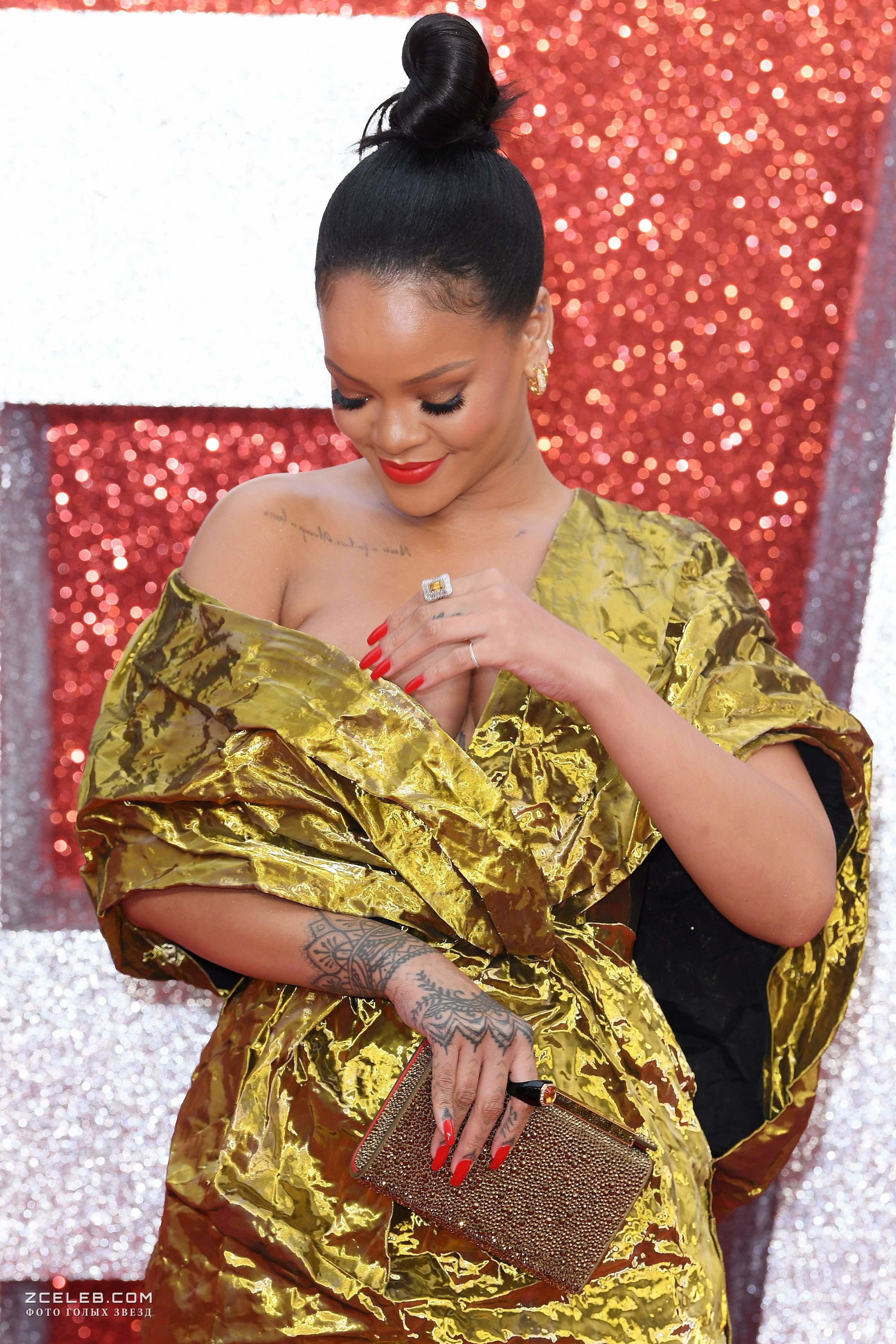 Красотка Рианна засветила грудь на премьере Oceans 8 в Лондоне в июне 2018 года. Красотка похожа на золотую рыбку, которая кому-то принесёт вожделенные исполнения тайных желаний.