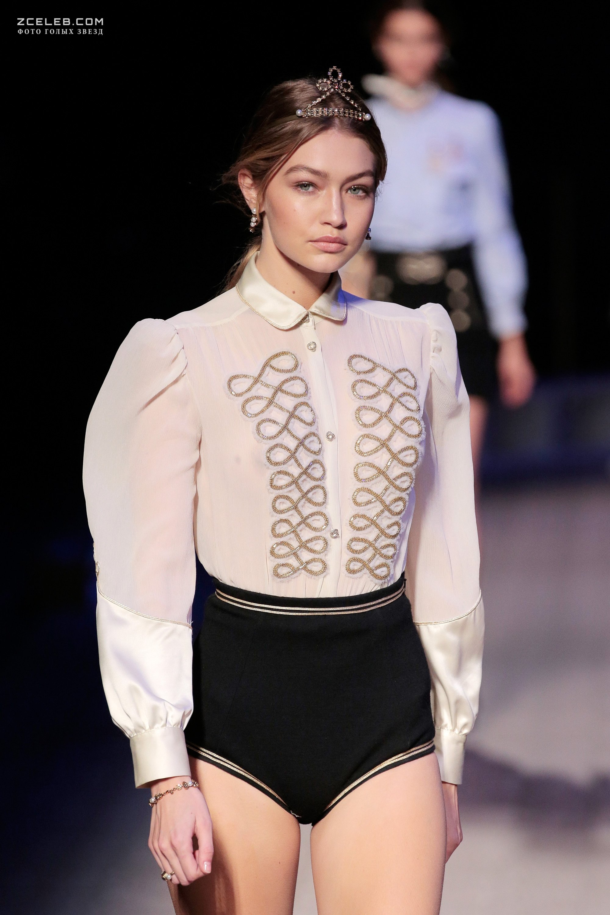 Голые сиськи Джиджи Хадид в прозрачной блузке на New York Fashion Week, 2016