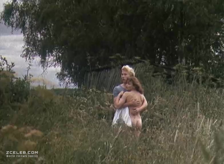 Анна Назарьева снялась голой в фильме «Кумпарсита» в 1993 году. Красотка с тонкой талией выглядит очень встревоженно, но у парня есть все шансы исправить ситуацию прям на этой зелёной траве.
