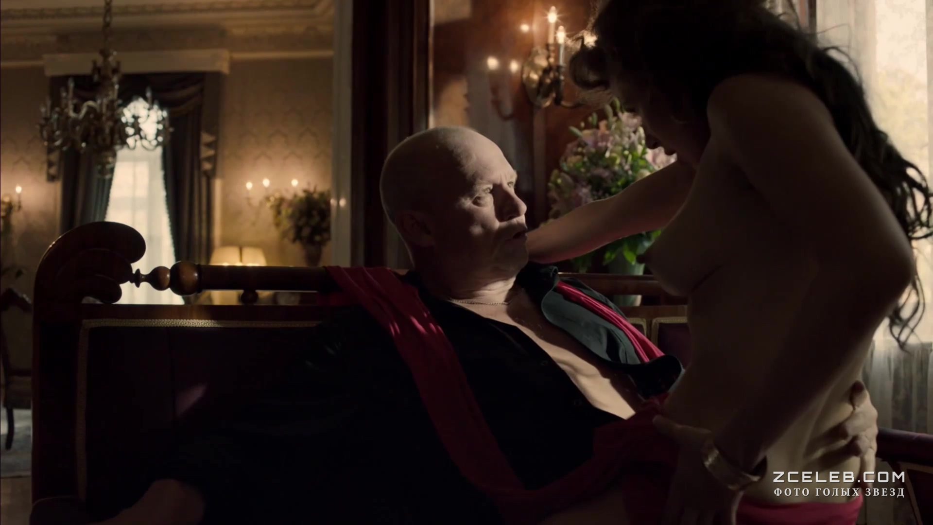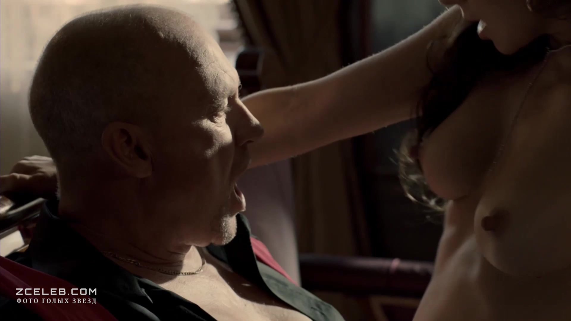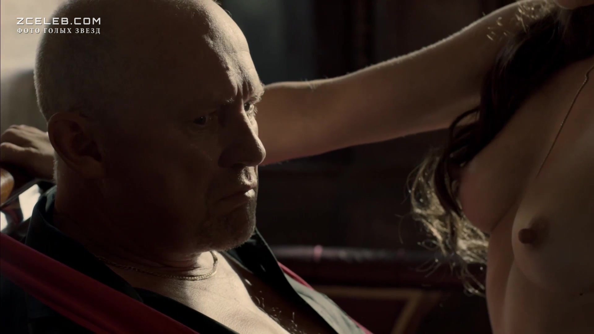 Джейн Мэй Грейвз снялась голой в сериале «Ответный удар» в 2010 году. Красотка явно задалась целью чего-то добиться от лысого мужика. Она старательно трётся у него на коленях, пока тот остаётся непоколебимым.