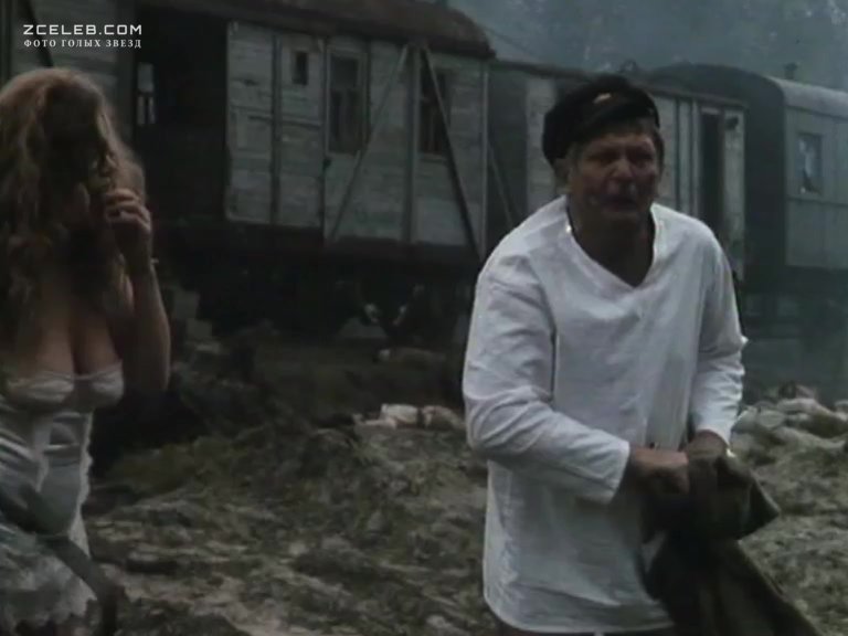 Елена Смолина засветила грудь в сериале «Конь Белый» в 1993 году. На фоне серости и разрухи сажает яркая парочка в красивых нарядах. Но из костюма девицы шаловливо выкатываются две спелые дыньки.