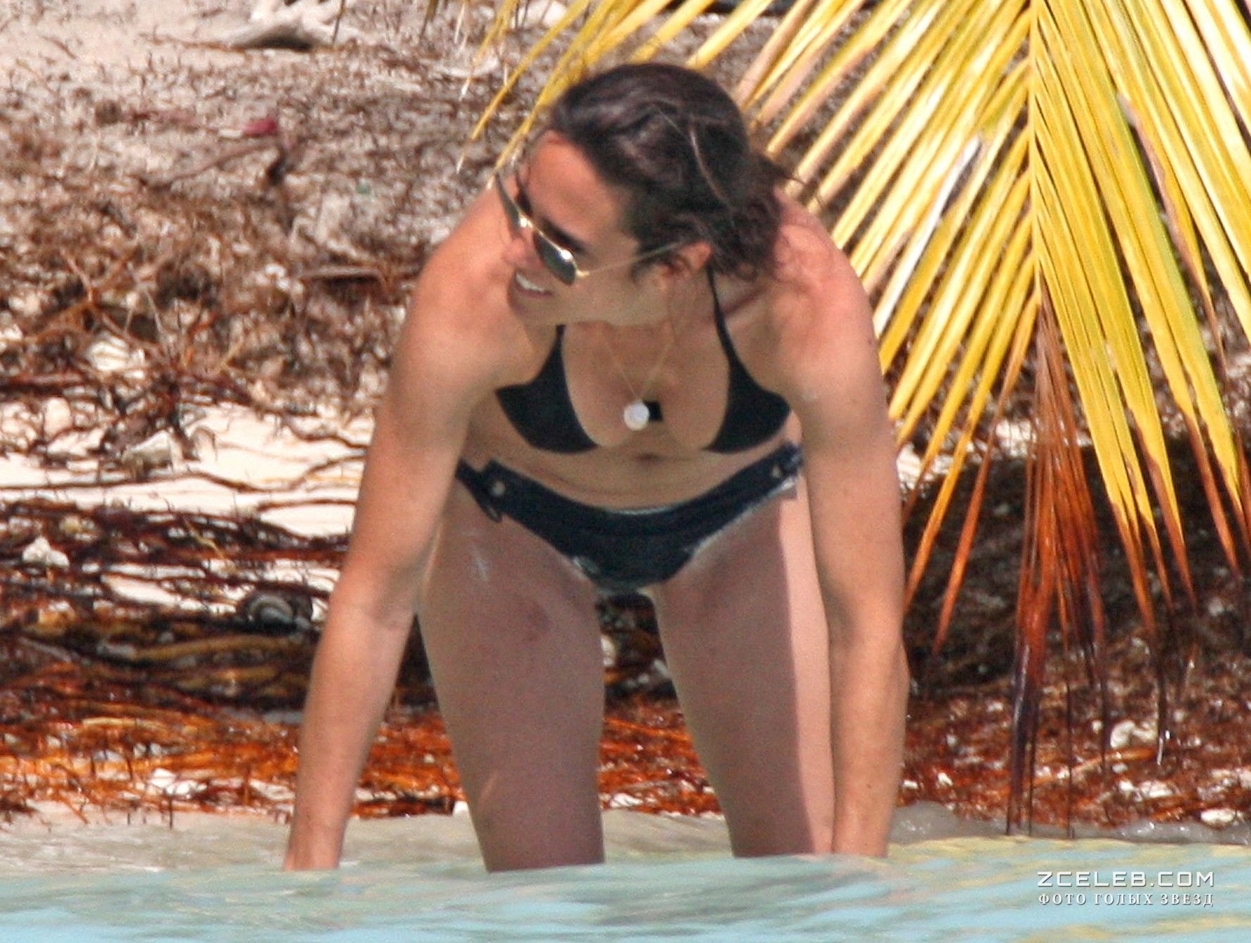 Дженнифер Коннелли в черном бикини на пляже, Июль 2009