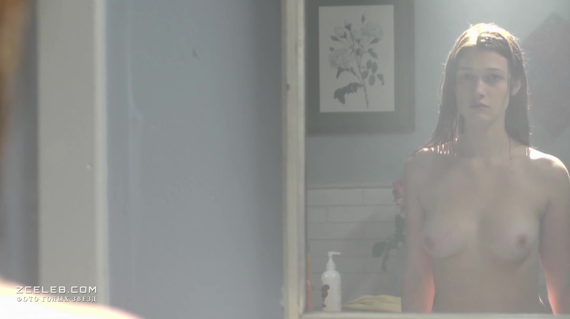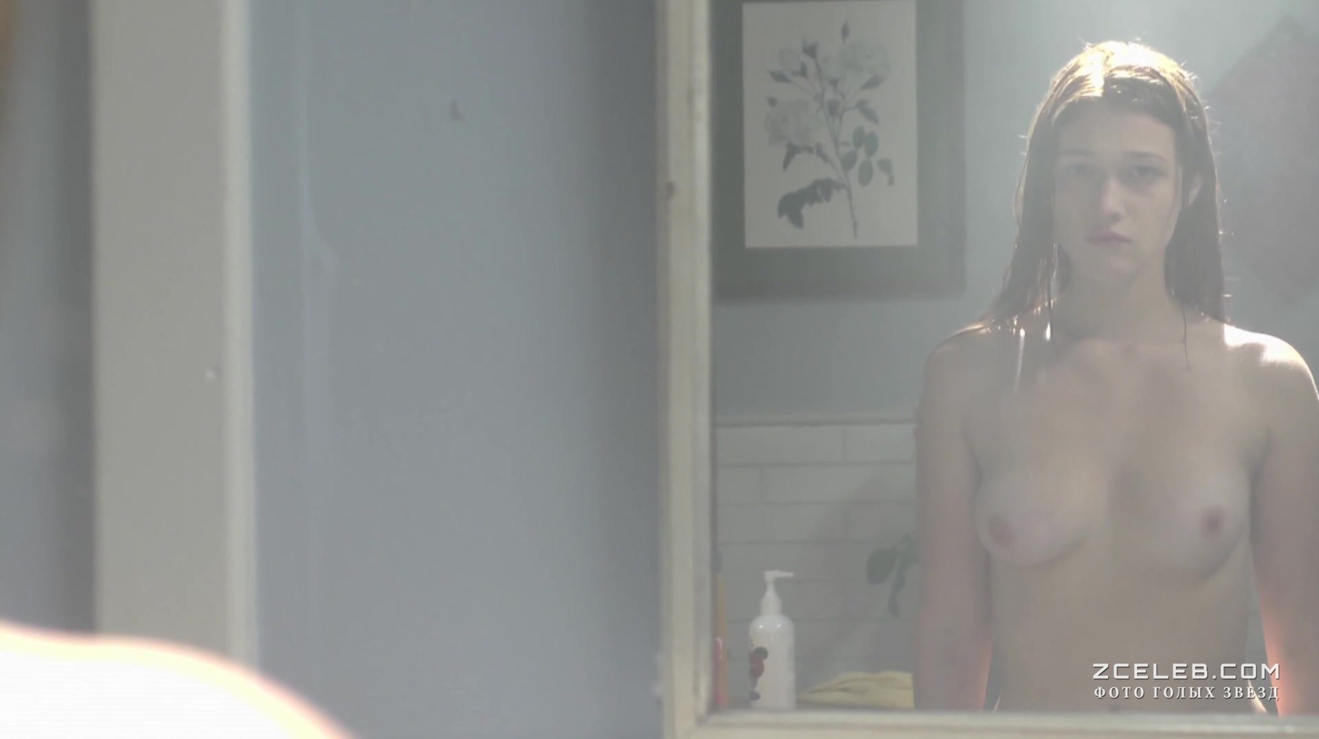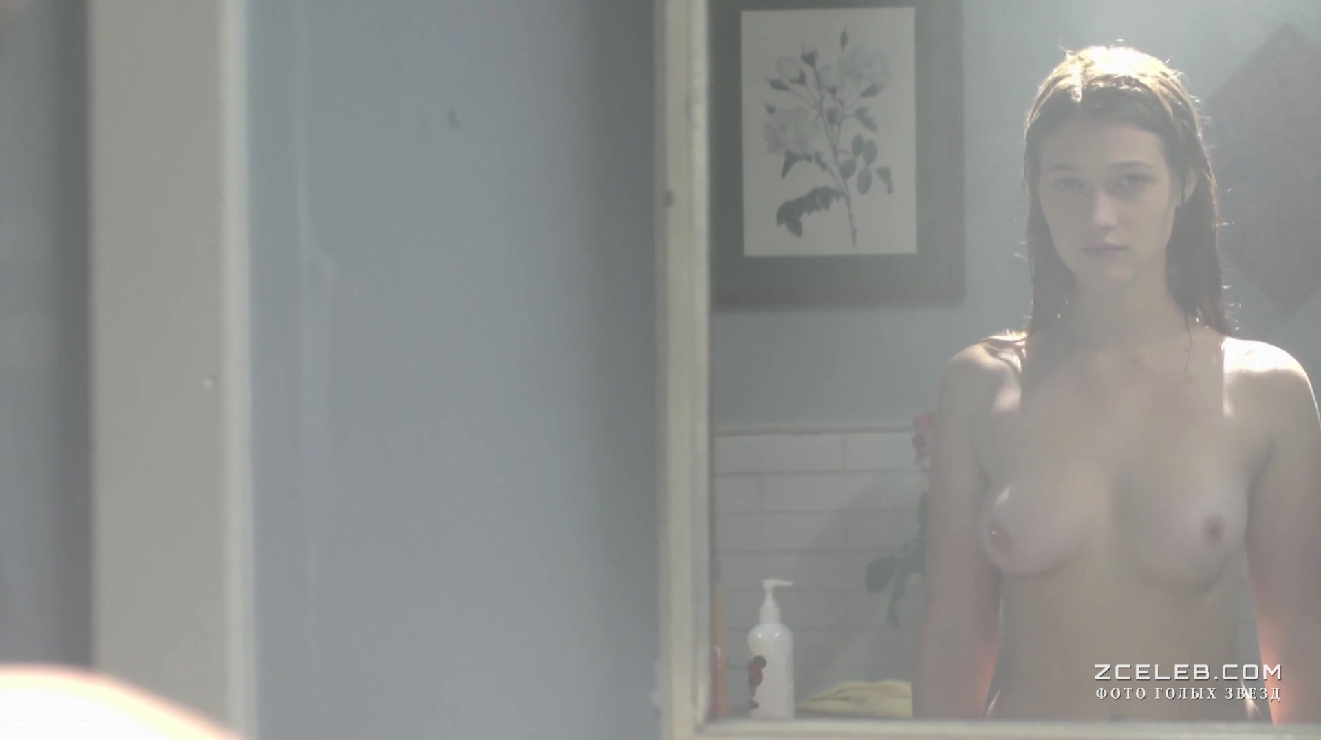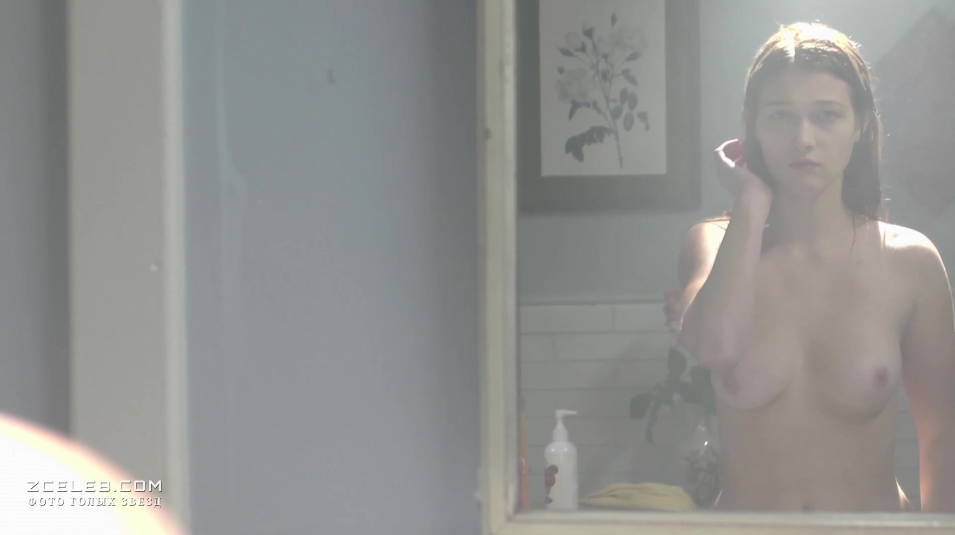 Голая грудь Николь Фокс в фильме «Эшли» в 2013 году. Красавица рассматривает себя в зеркало, словно ищет какие-то ответы на волнующие вопросы. Хотелось бы, чтобы она не сомневалась в том, насколько прекрасна.