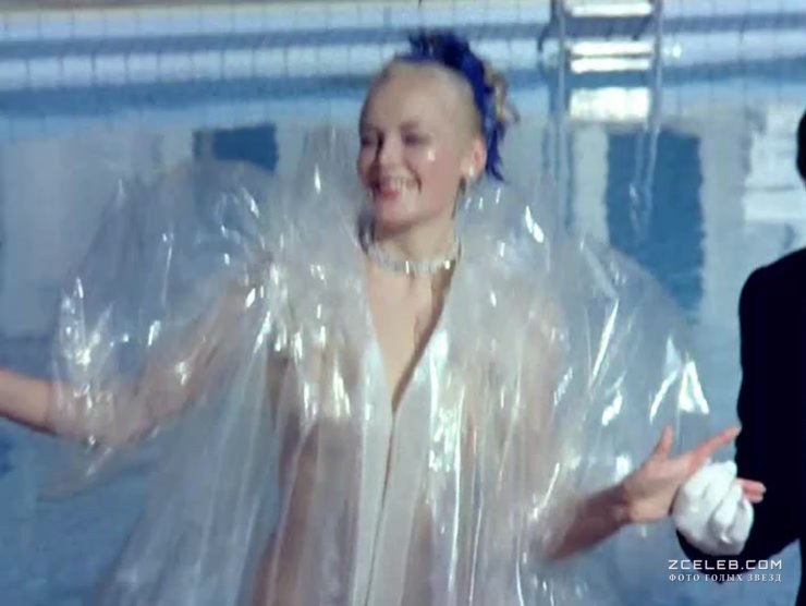 Татьяна Гаккель засветила грудь в фильме «Как стать звездой» в 1986 году. Лучезарная девушка доказывает, что даже в костюме из полиэтилена можно выглядеть ослепительно, как vip-особа.