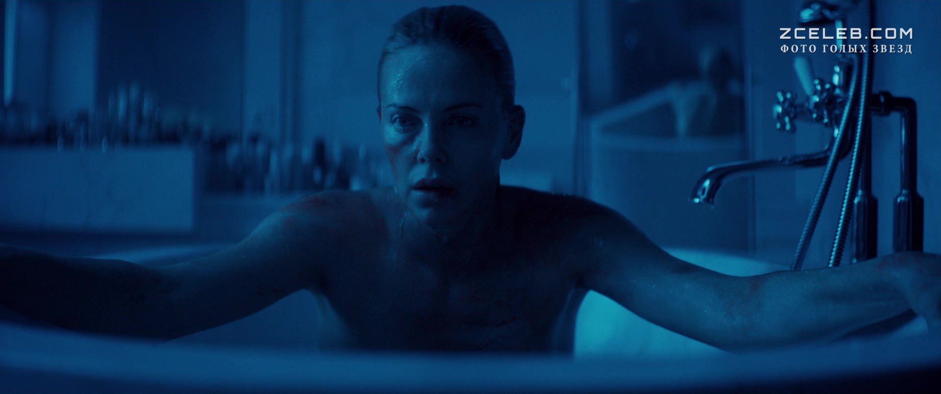 Шарлиз Терон оголила грудь и попу в фильме «Взрывная блондинка» в 2017 году. Под покровом ночи, в комнате с шикарным видом на центр известного города соблазнительная красотка принимает ванну в полном одиночестве.
