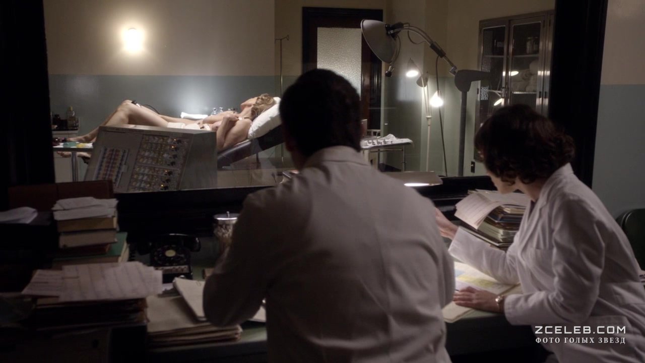 Шерил Брикер показала голую грудь в сериале «Мастера секса» в 2013 году. Пока учёные проводят свои исследования, красотка без одежды лежит на столе. Может, именно сейчас там происходят важные открытия?