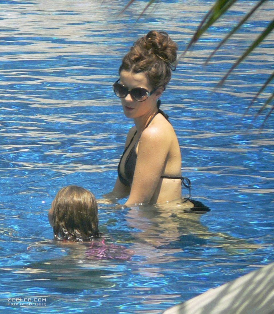 Горячая Кейт Бекинсейл на пляже с семьей