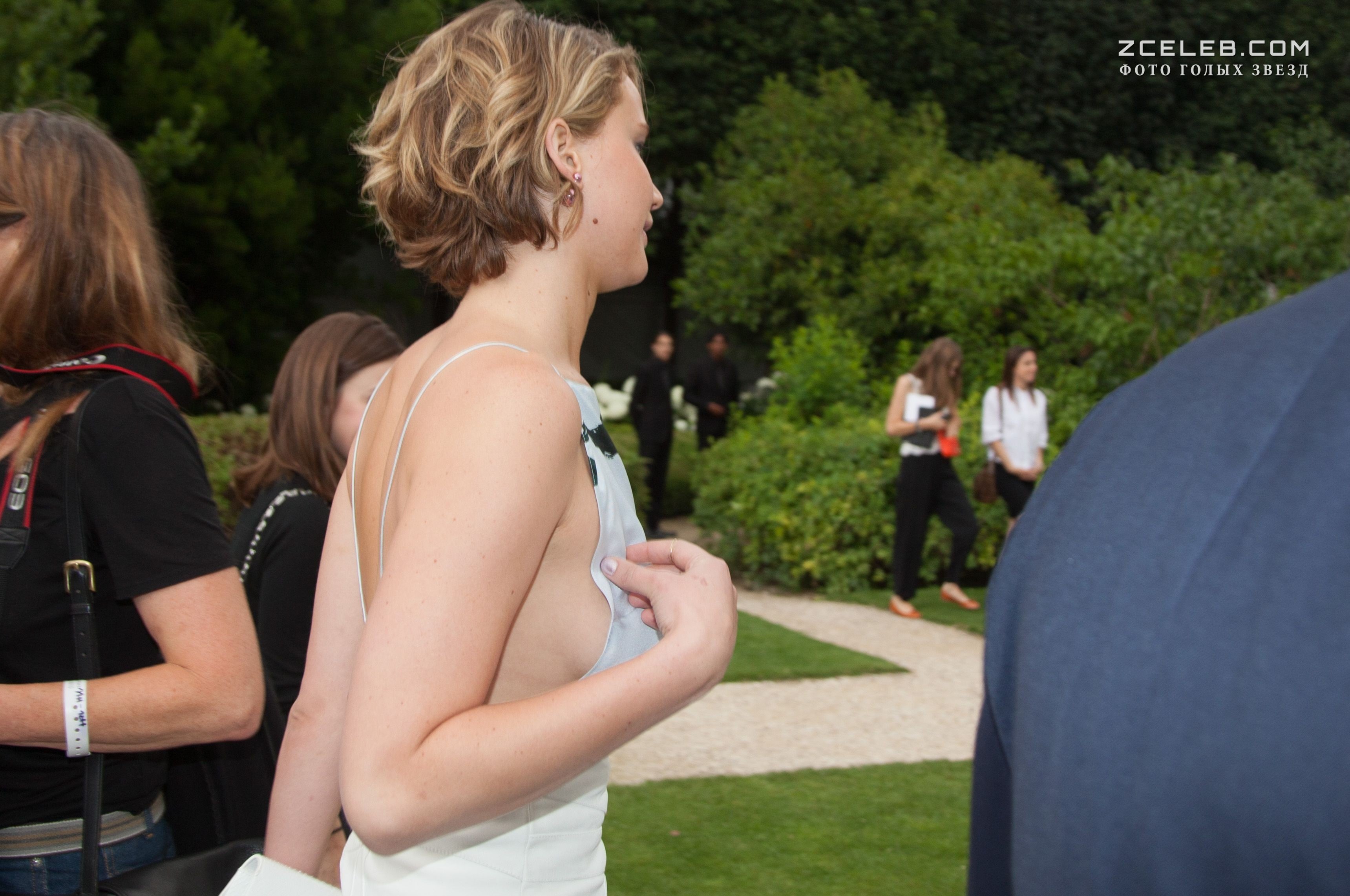 Свисающая грудь Дженнифер Лоуренс на неделе моды в Париже
