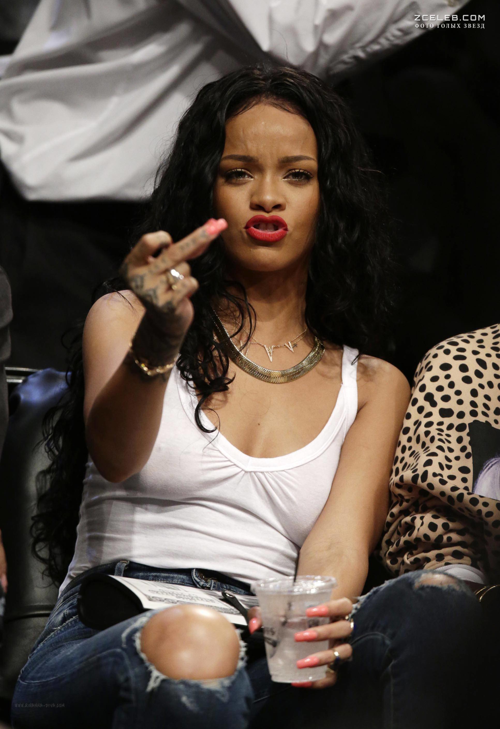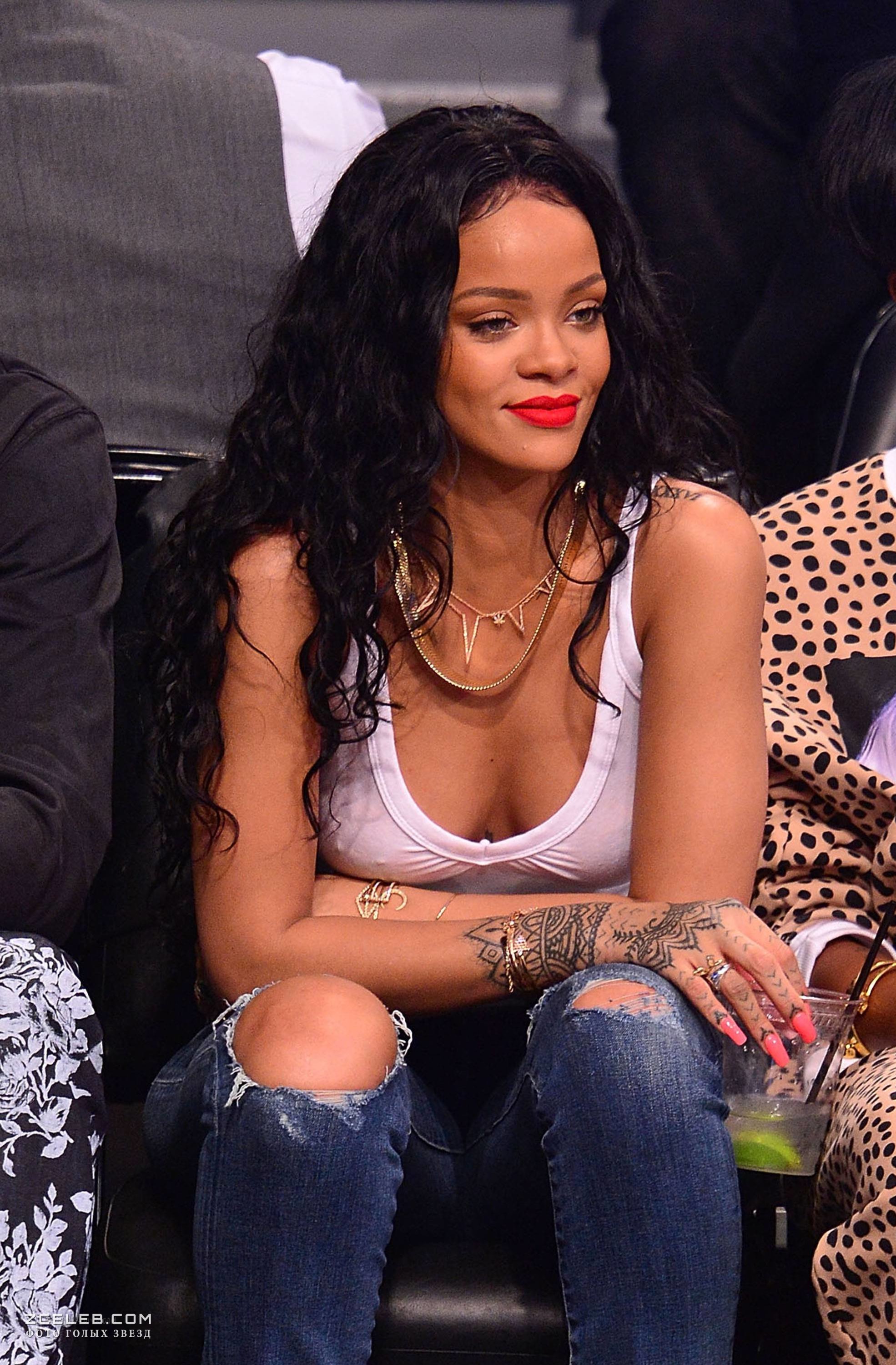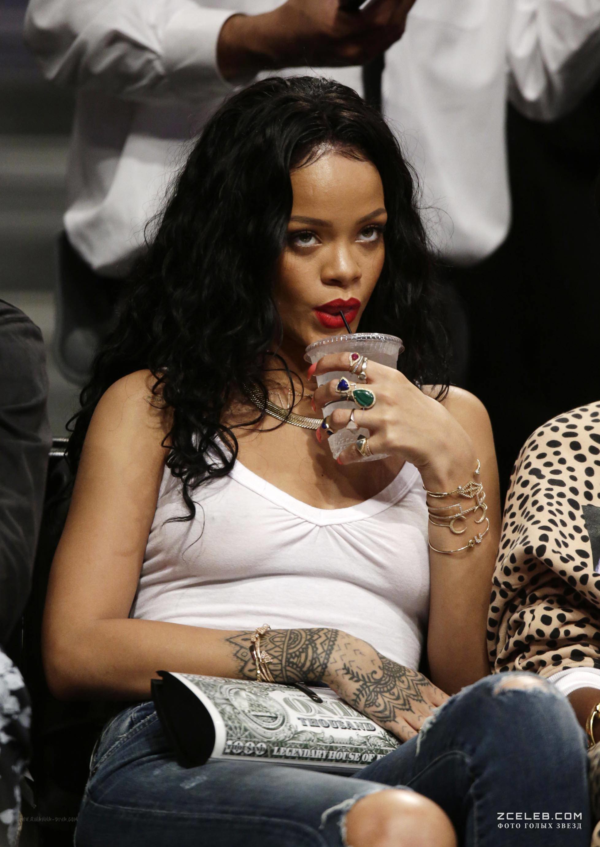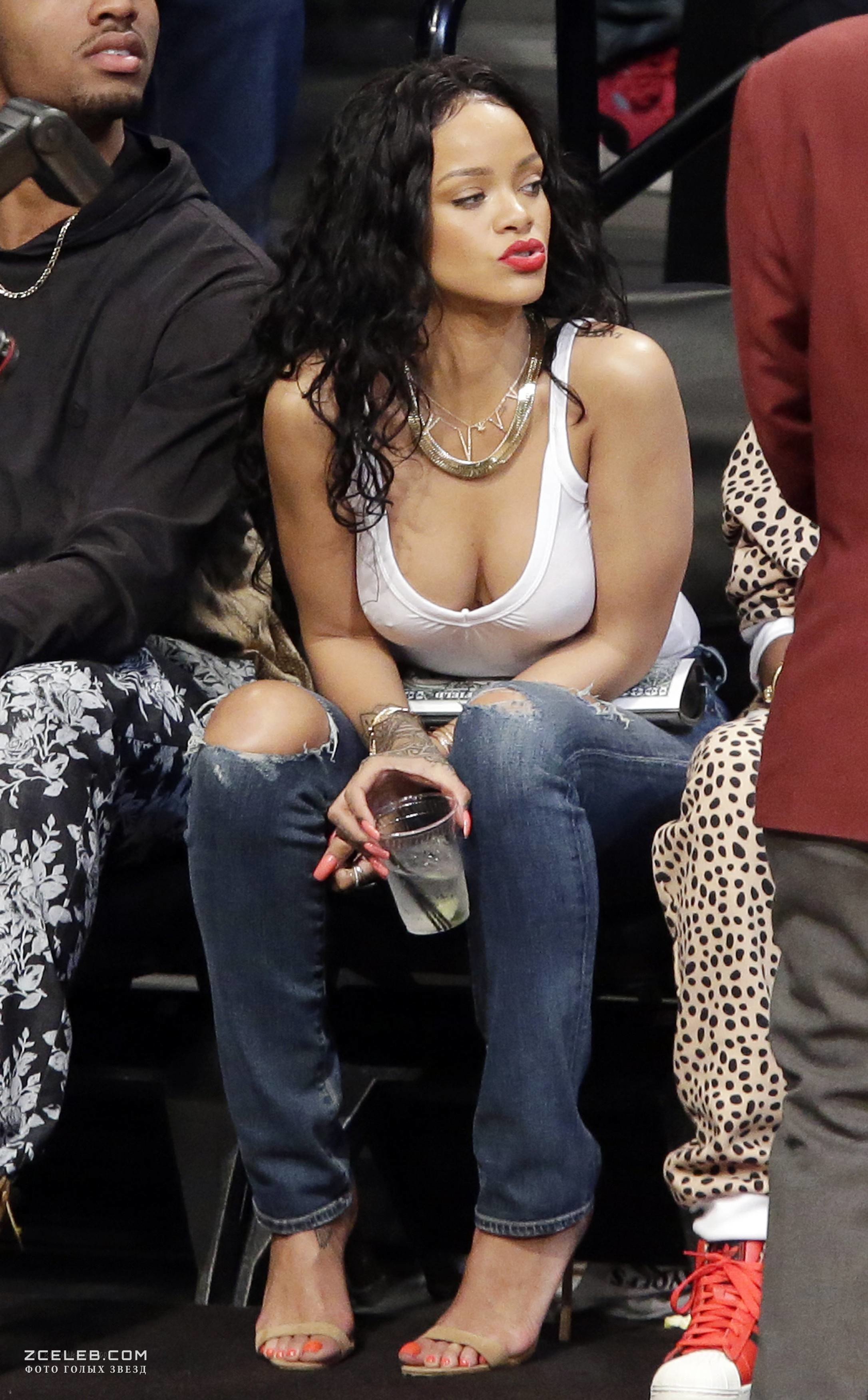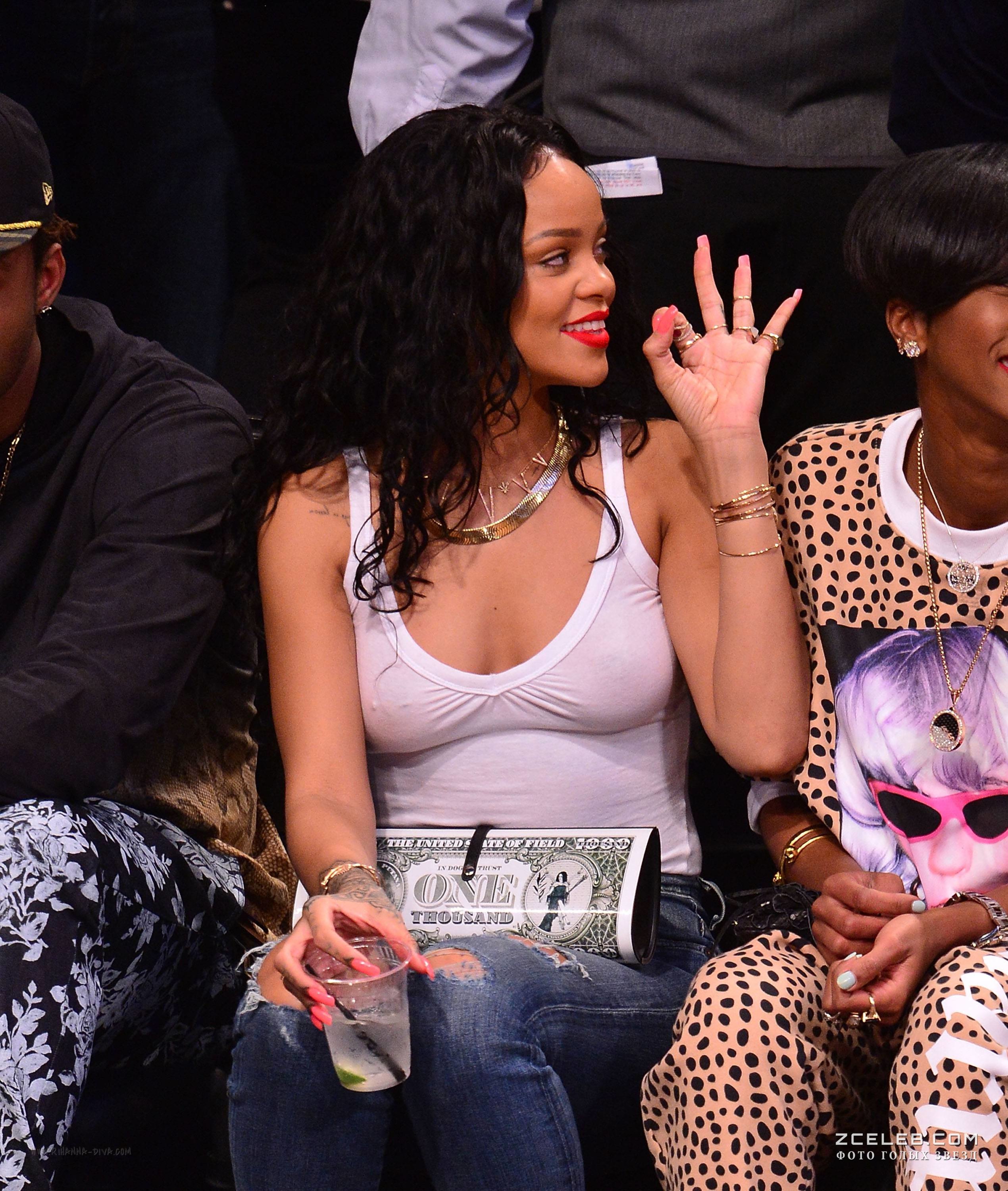 Рианна сидит без лифчика на баскетболе в Нью-Йорке, 2014