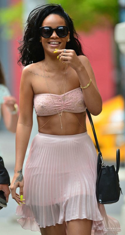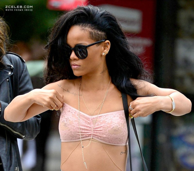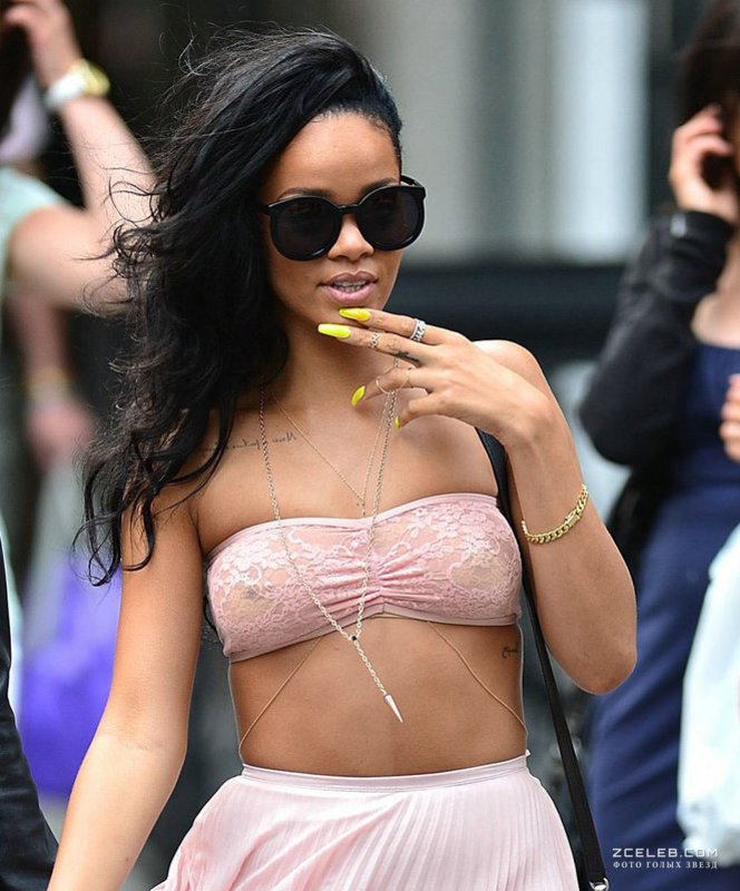 Рианны показала соблазнительные сосочки в прозрачном лифчике 11 июня 2012 года в Нью-Йорке.