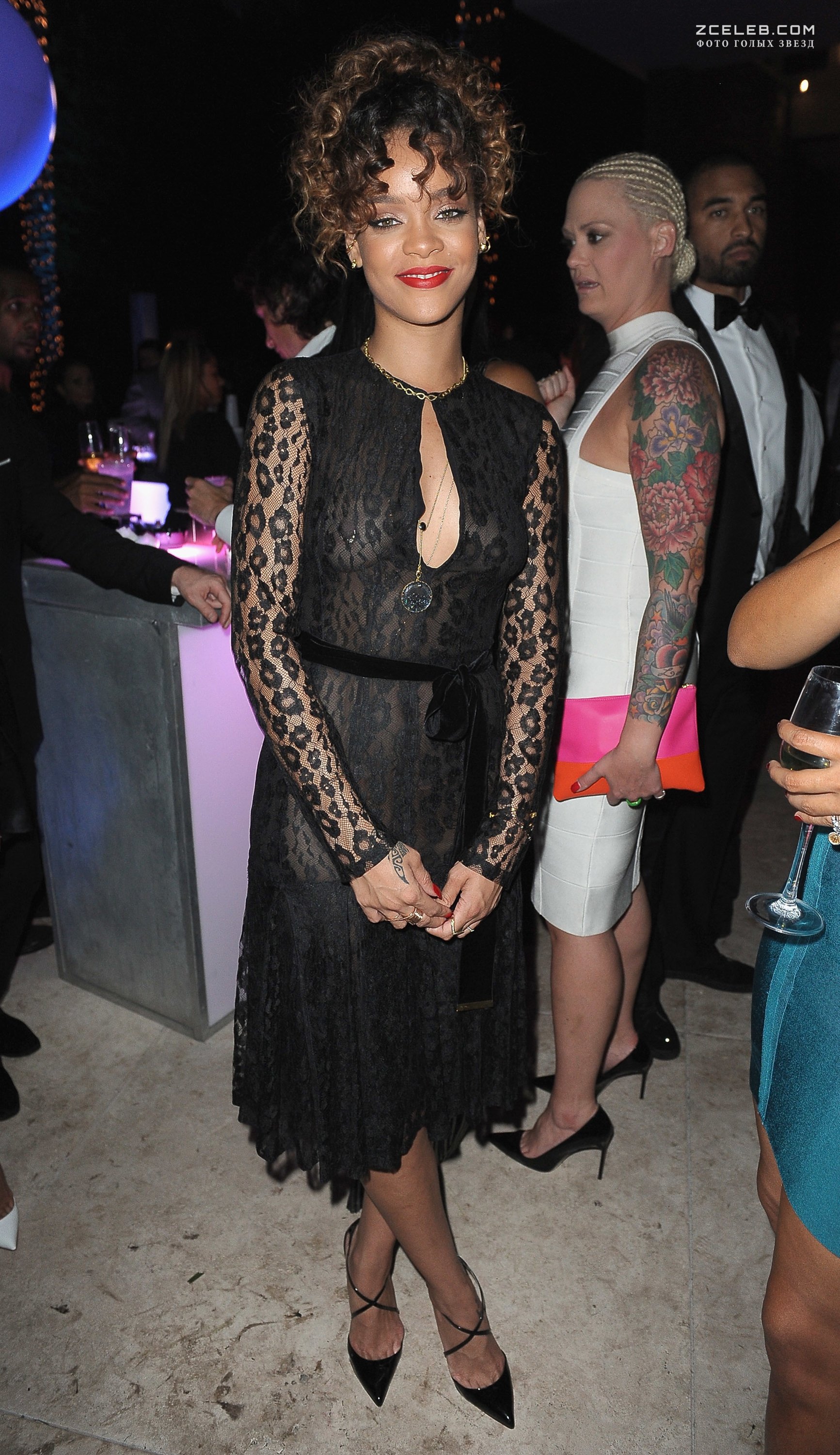 У Рианны видно голую грудь через прозрачное платье на новогодней вечеринке 31 декабря 2012 года.