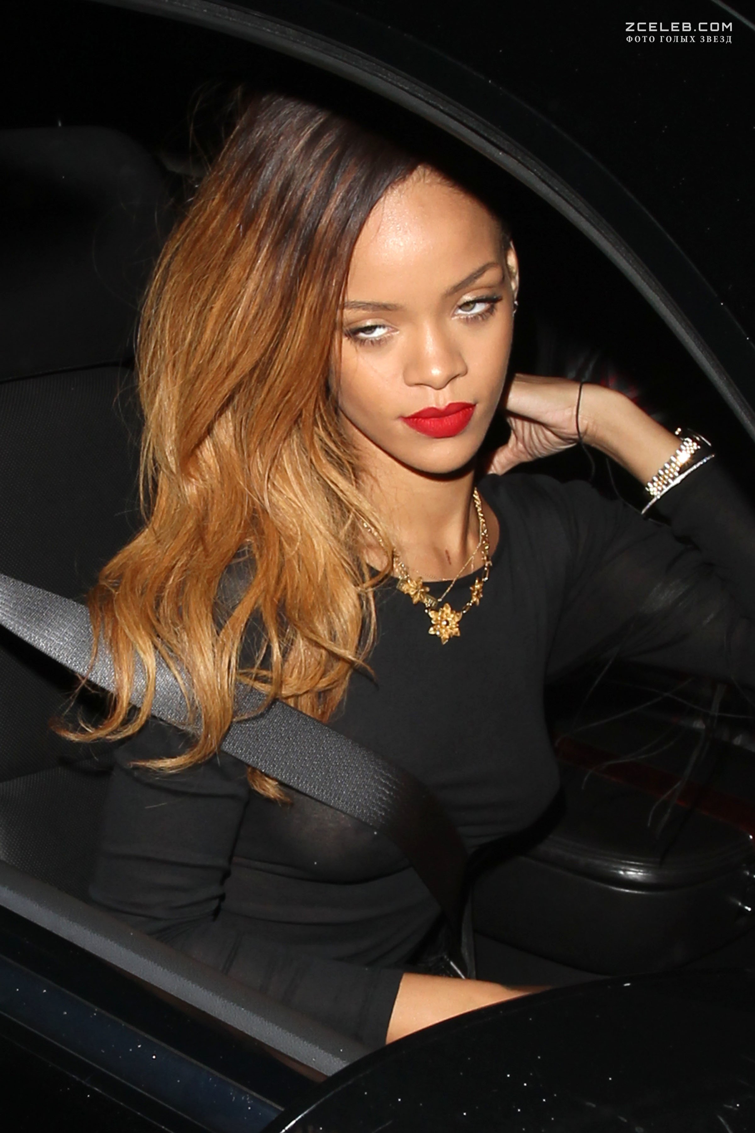 Рианна засветила сиську в машине