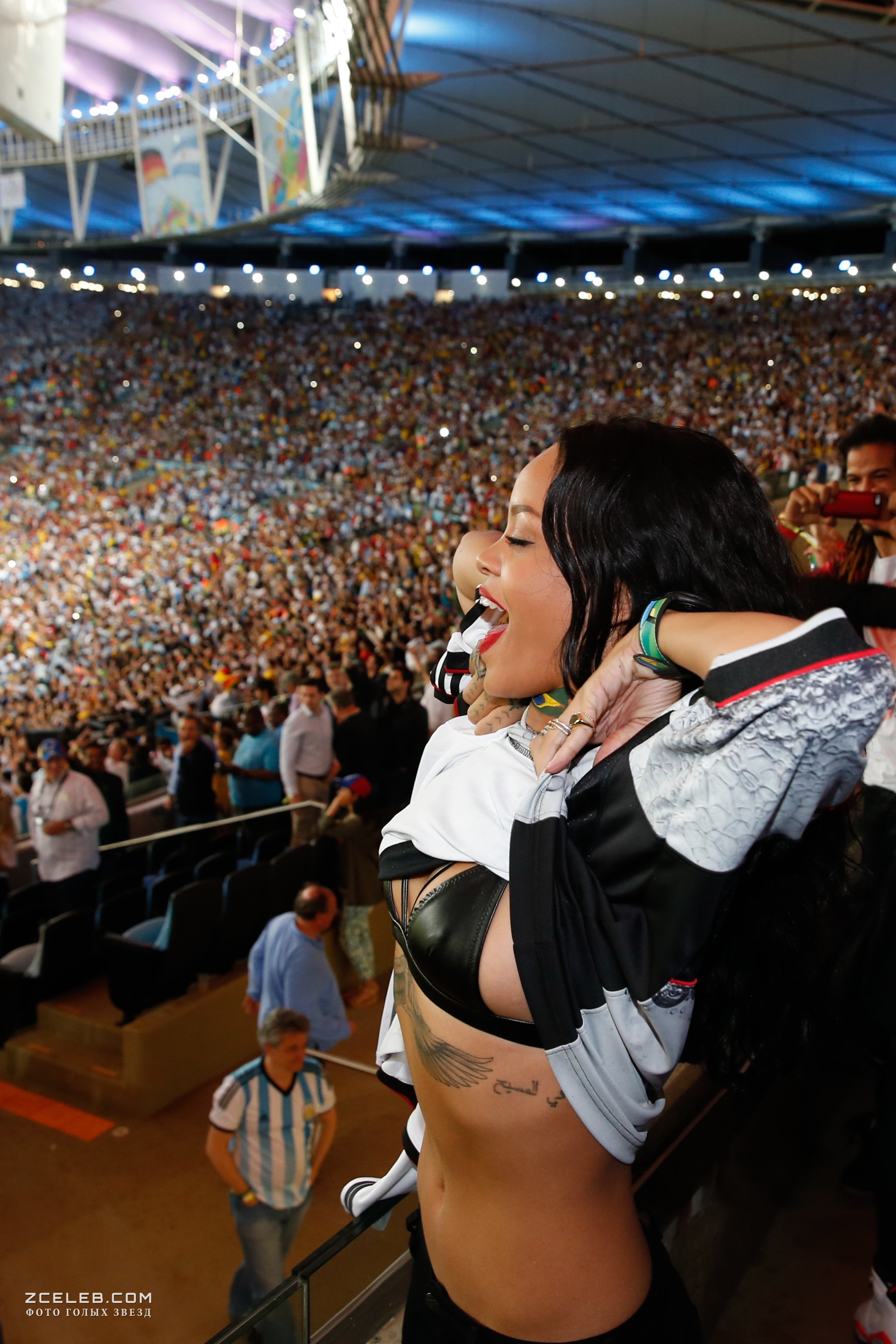 Рианна показывает сиськи с трибуны на финале чемпионата мира по футболу 2014 между Германией и Аргентиной.