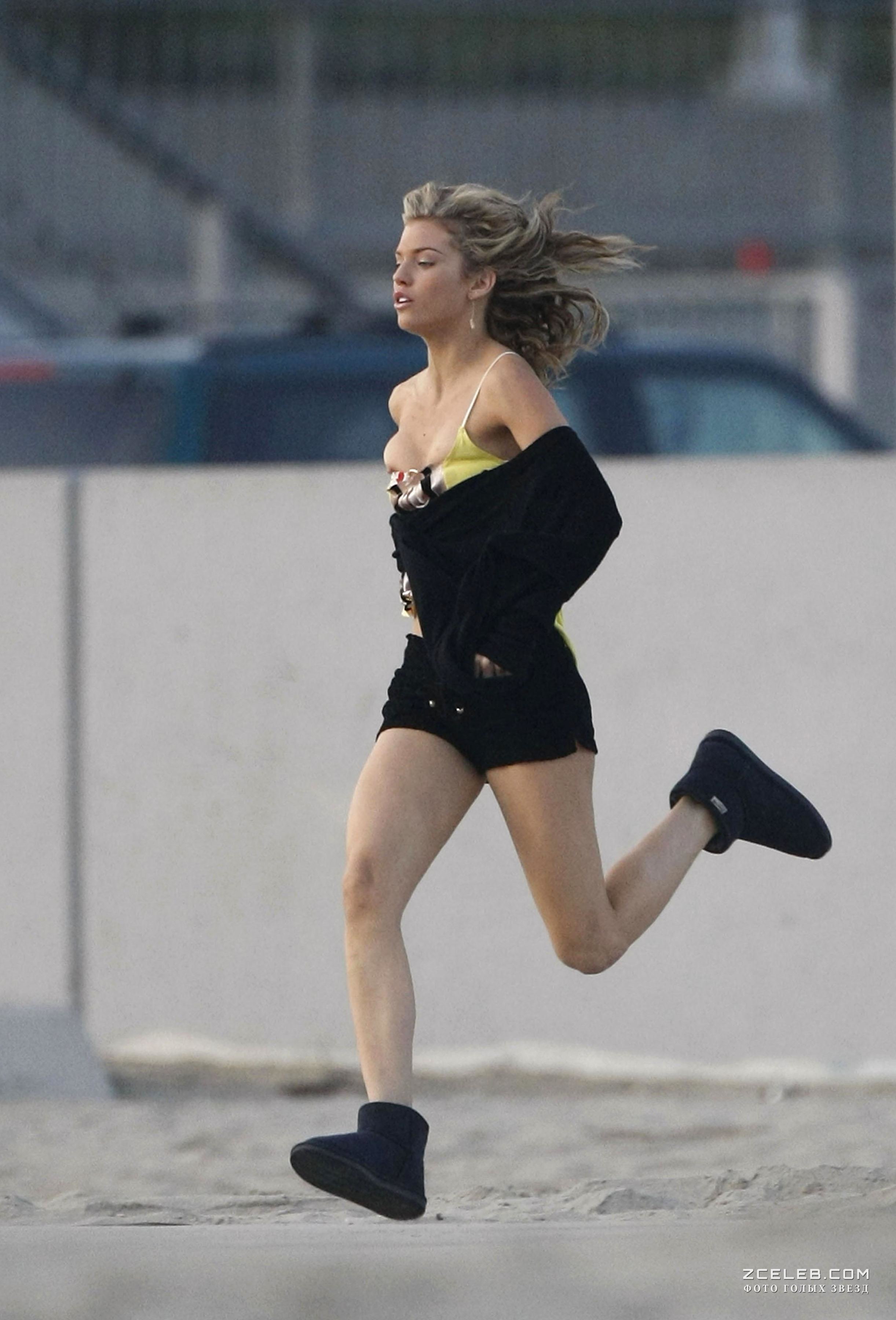Голый сосок АнныЛинн МакКорд во время бега, 2008