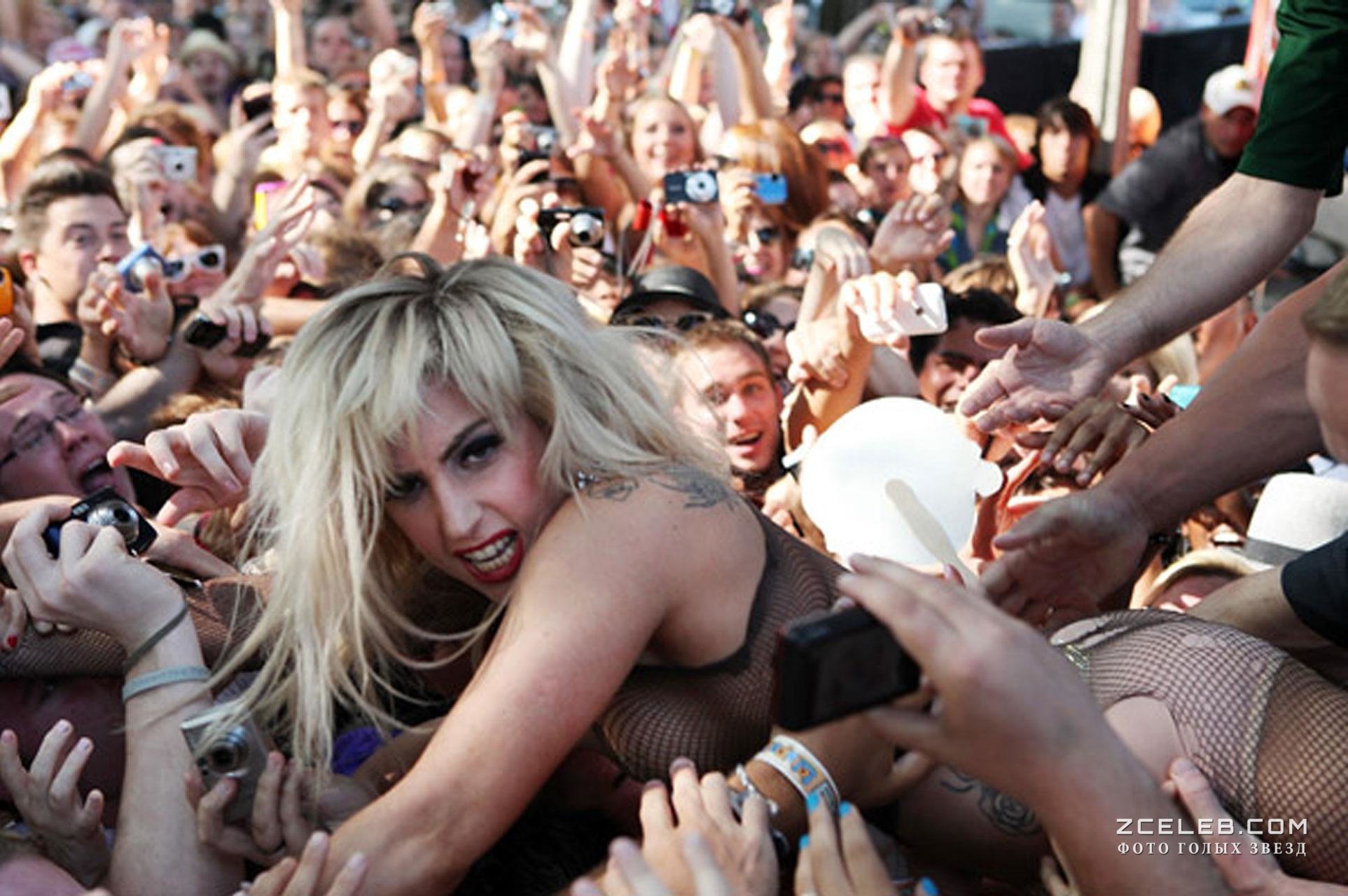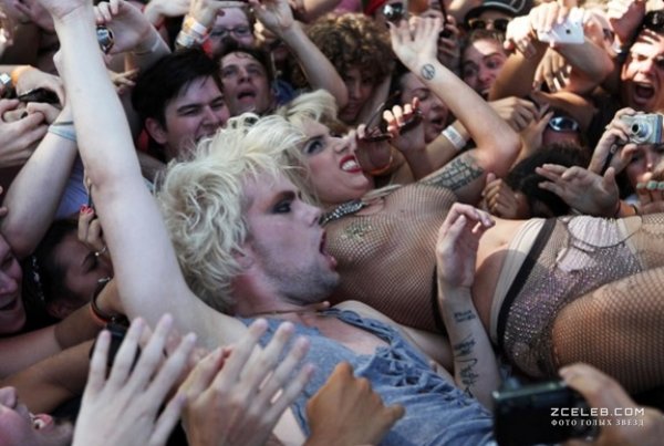 Леди Гага в развратной одежде прыгнула к фанатам со сцены, 2010