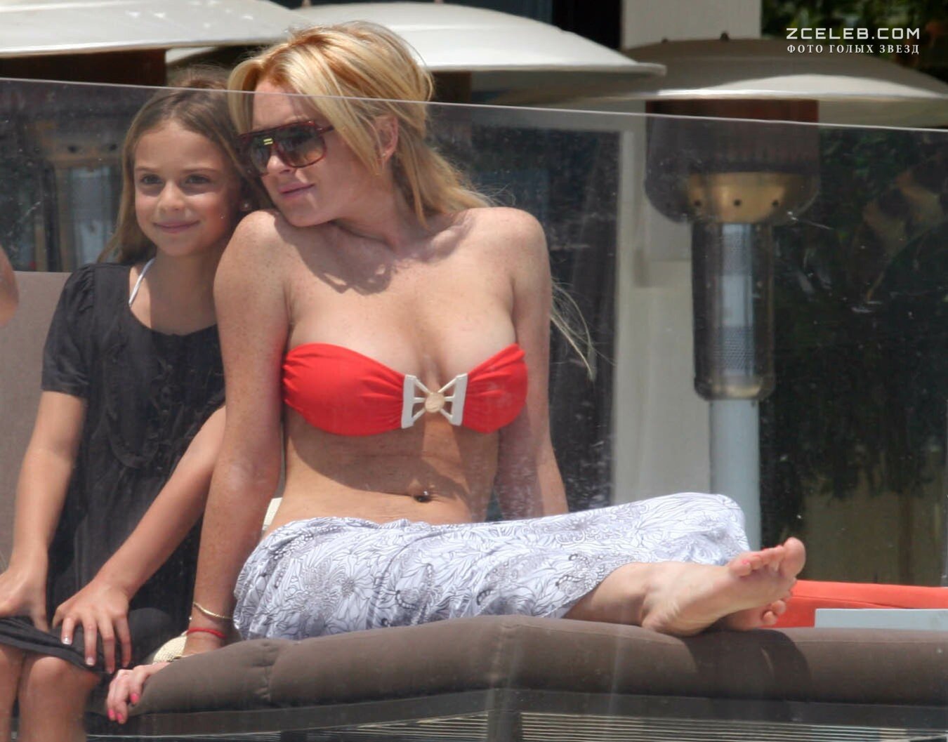Сочная грудь Линдси Лохан в красном купальнике в Малибу, 22.07.2007
