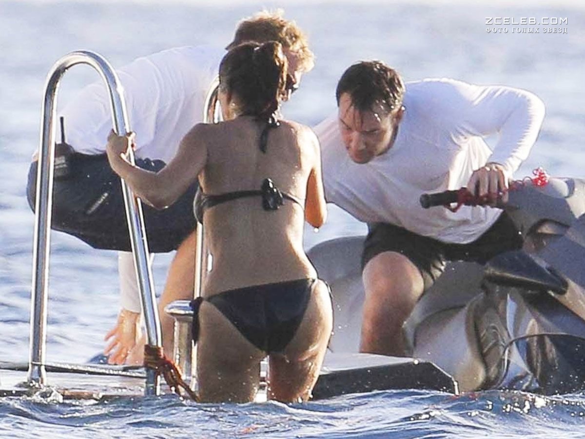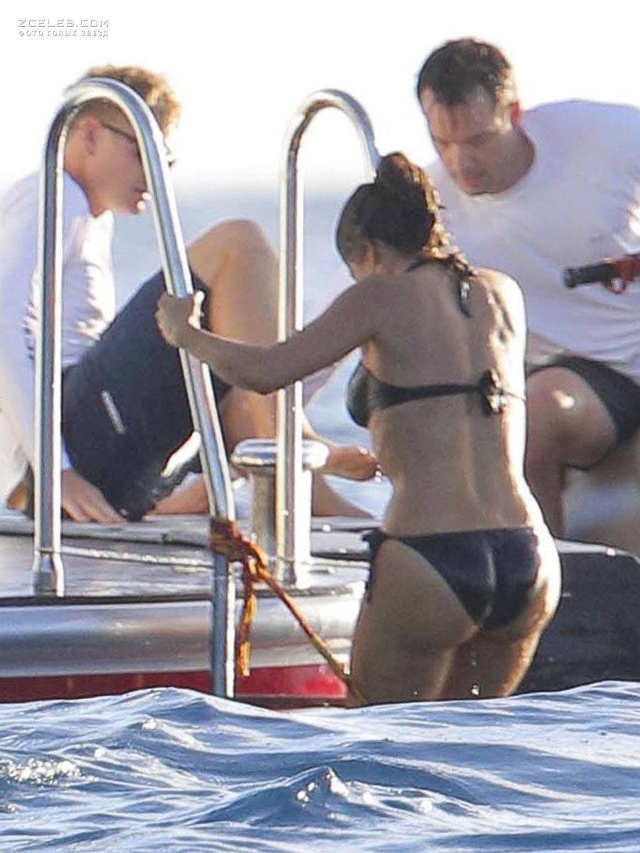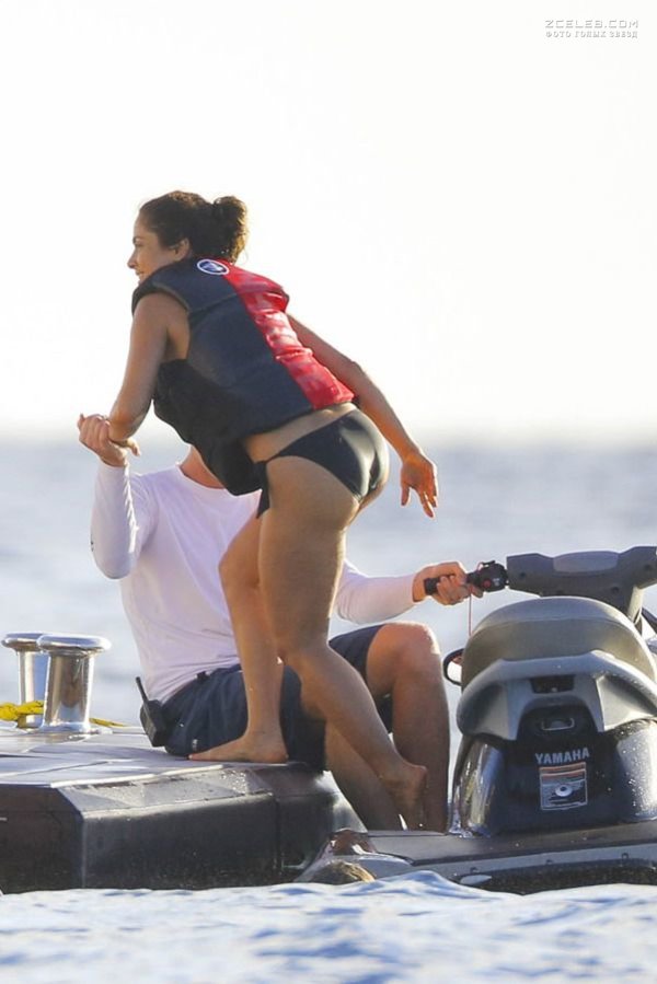 Мокрая попка Сальмы Хайек в купальнике на отдыхе в Сент-Бартс в декабре 2014 года.
