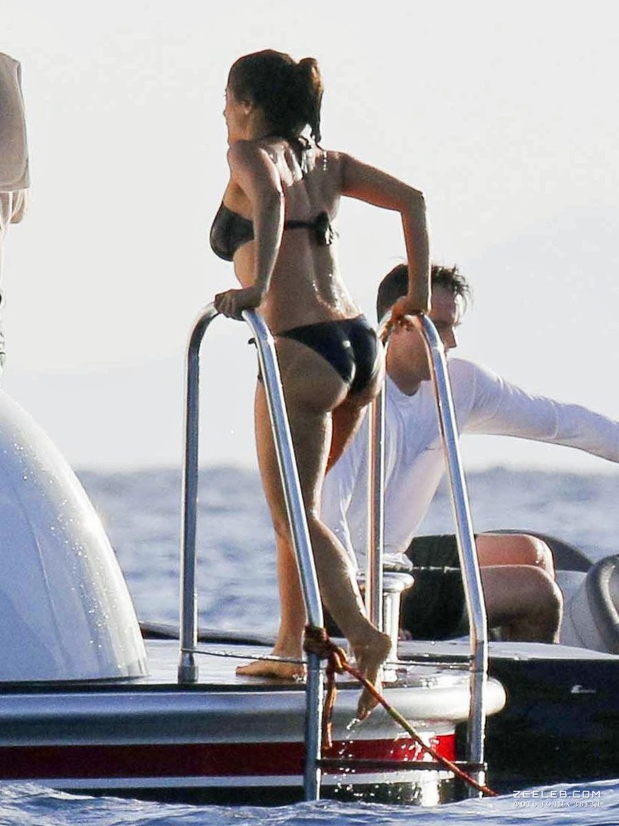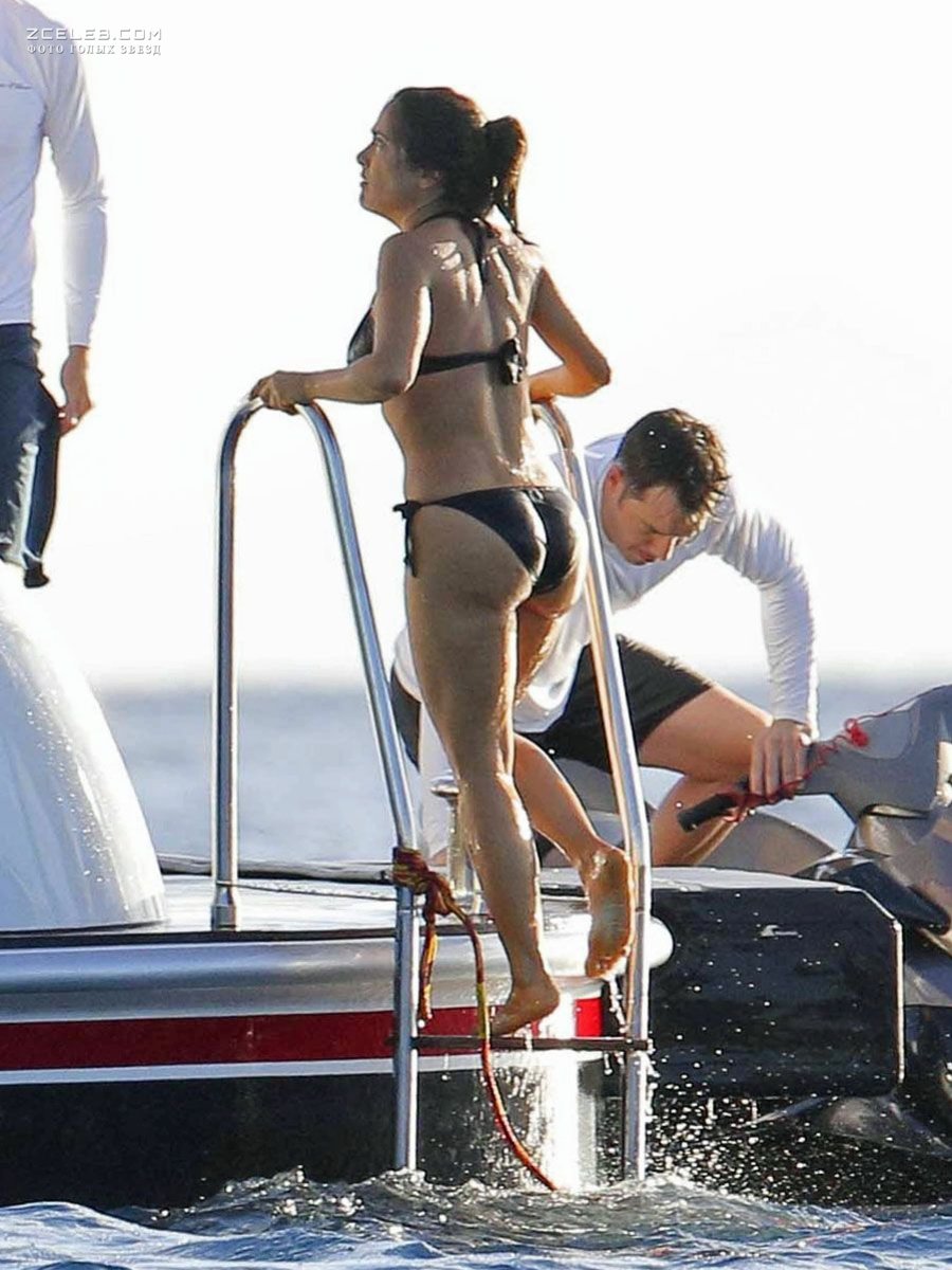 Мокрая попка Сальмы Хайек в купальнике в Сент-Бартс, Декабрь 2014