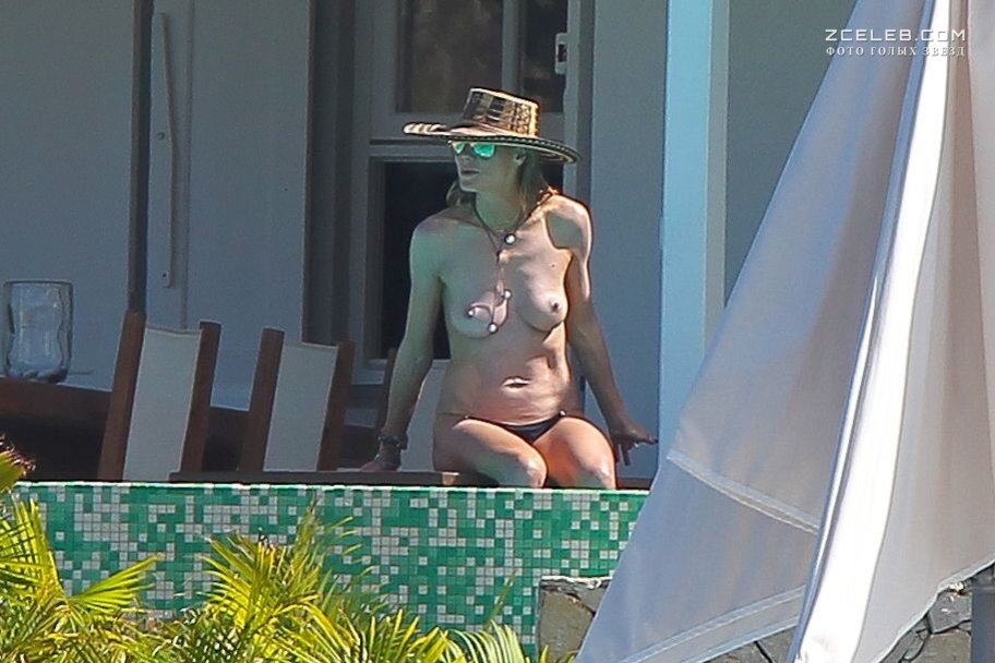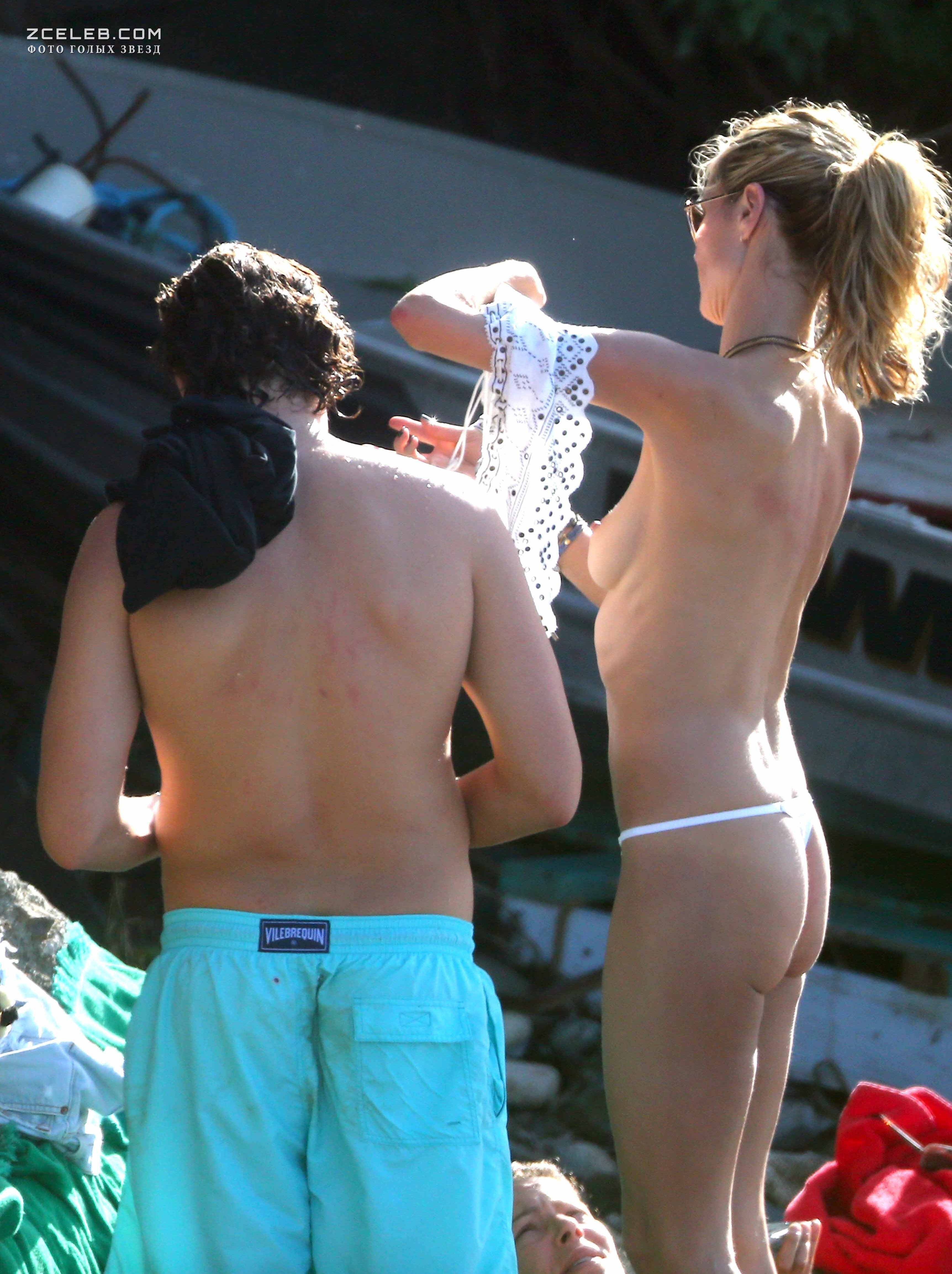 Хайди Клум топлесс на пляже в Корсике, 05.08.2011