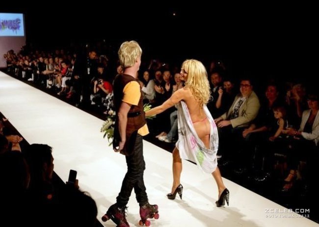 Памела Андерсон засветила соски на подиуме, 2009