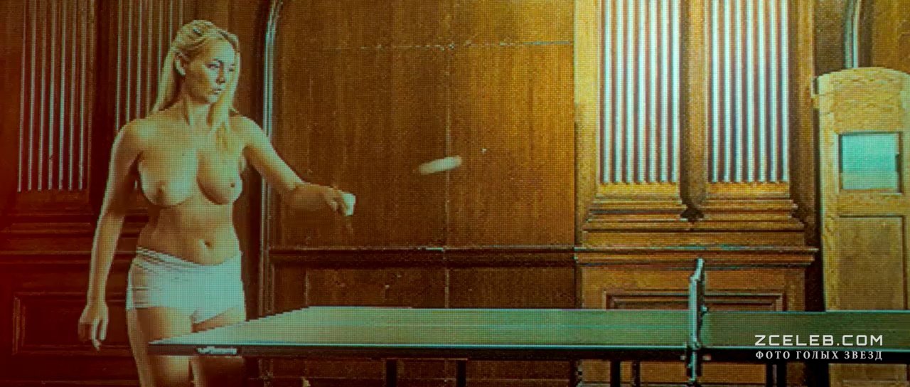 Голая грудь Хейли-Мари Коппин в фильме «Дом Хемингуэй» в 2013 году. Очаровательная блондинка в милых трусиках готова обыграть вас в настольном теннисе.
