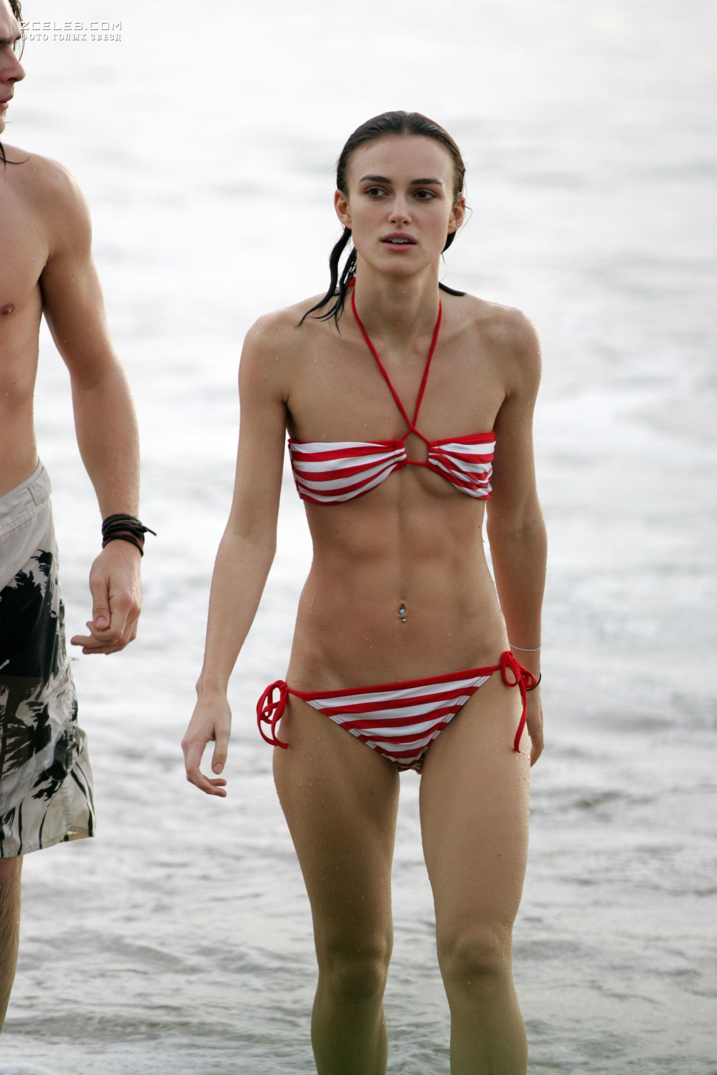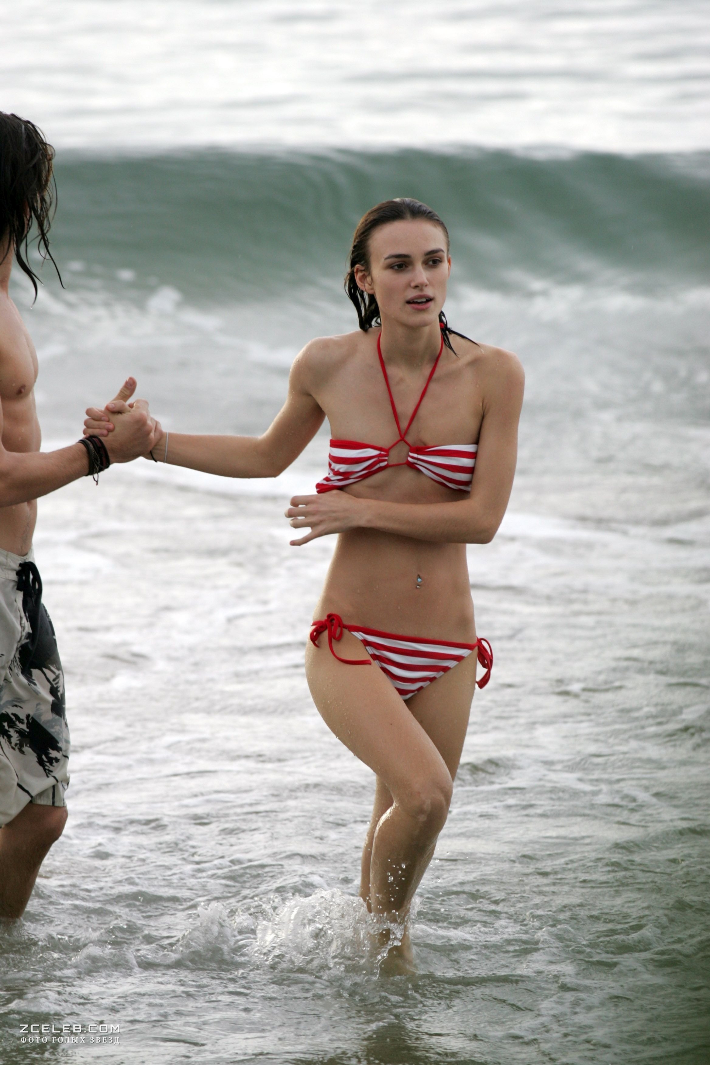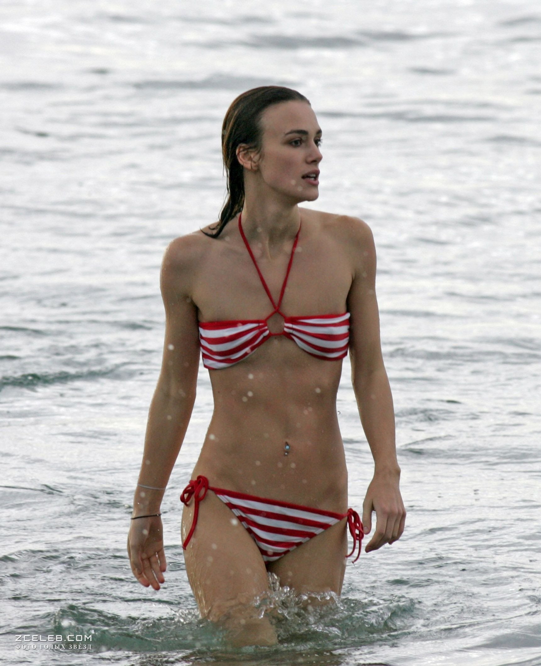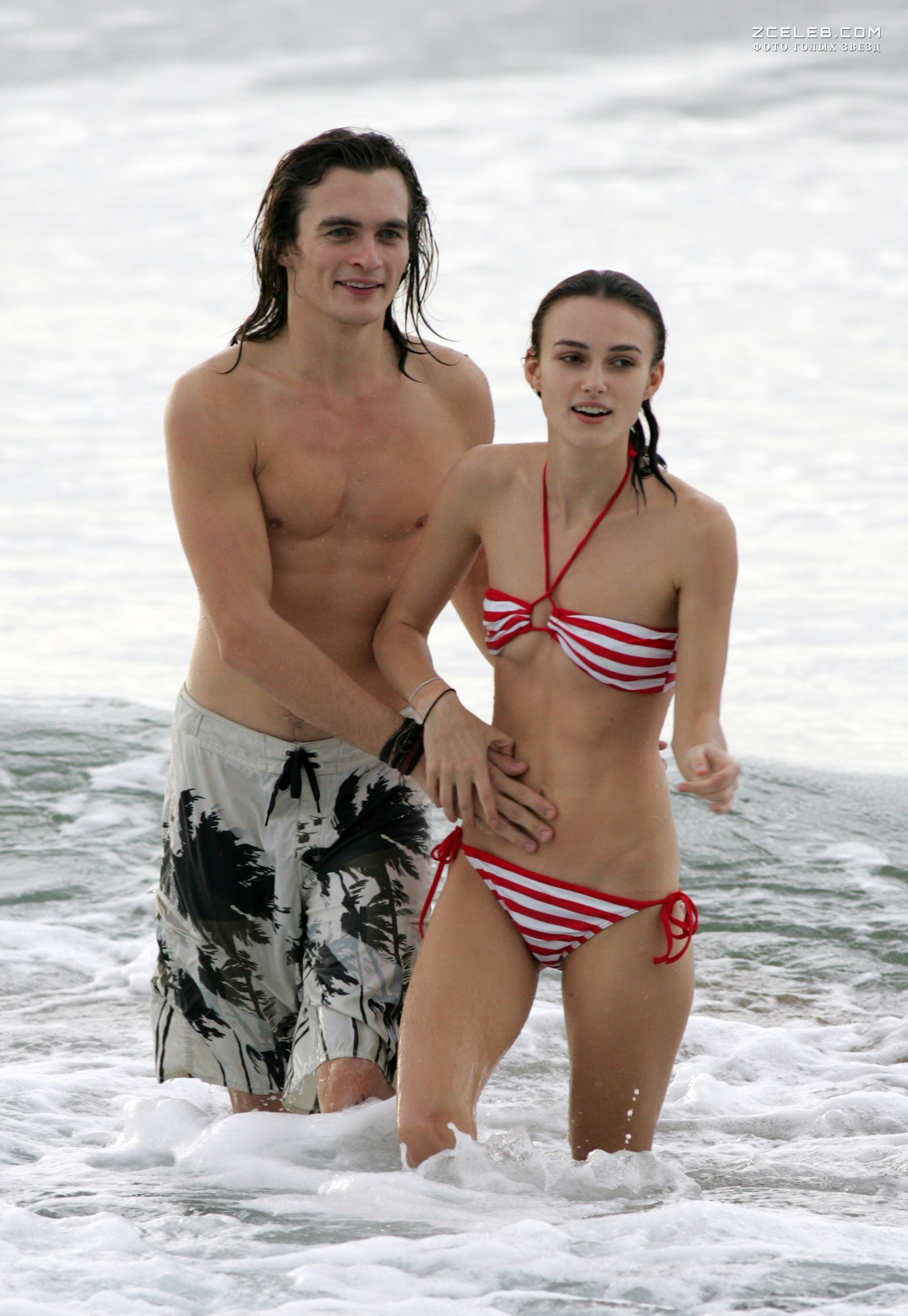 Кира Найтли без бюстгальтера в мокрой майке на Багамах, Июнь 2006