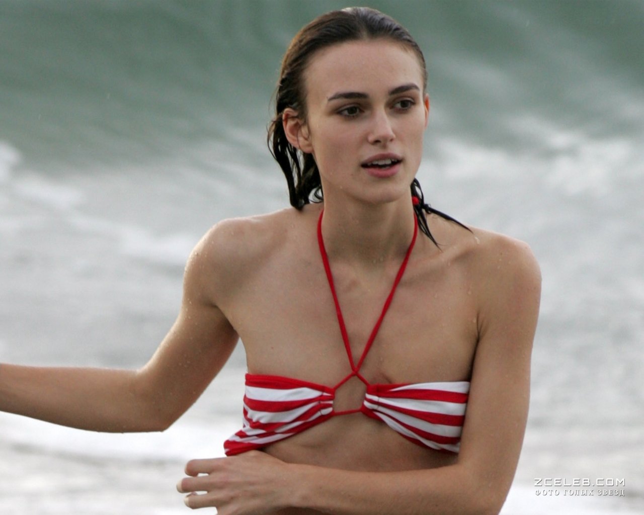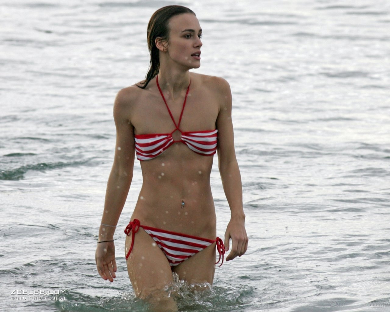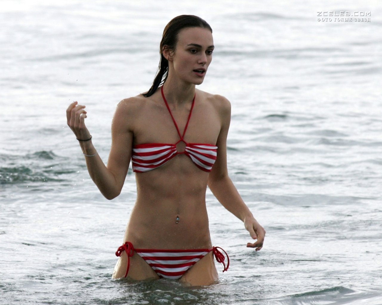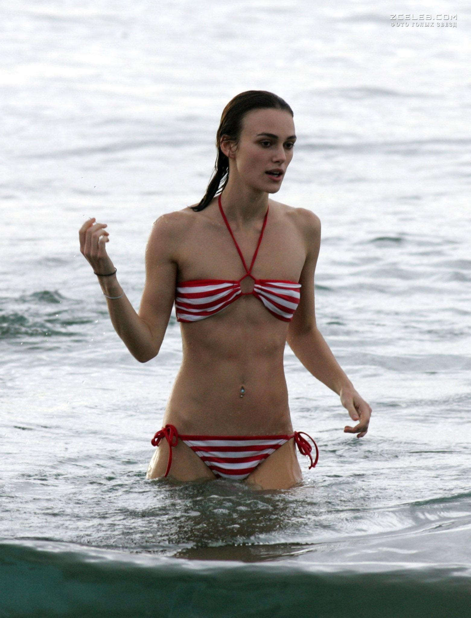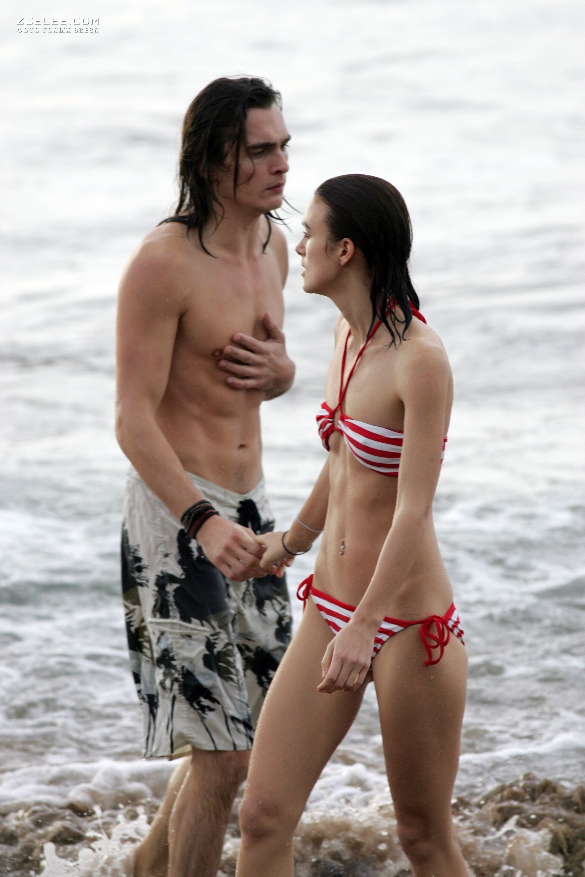 Кира Найтли без бюстгальтера в мокрой майке на Багамах, Июнь 2006