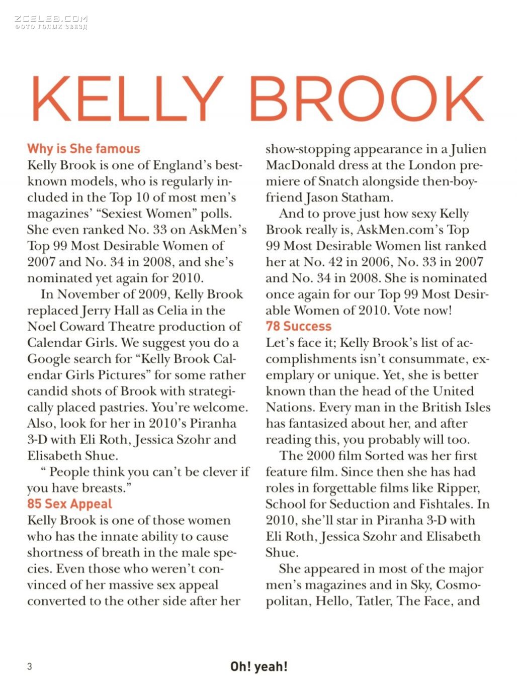 Возбуждающая Келли Брук для мартовского выпуска журнала Oh! Yeah! 20103 года в США.