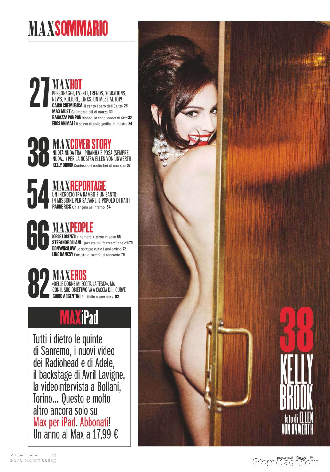 Келли Брук снялась обнаженной в мартовском выпуске журнала Max 2011 года в Италии.