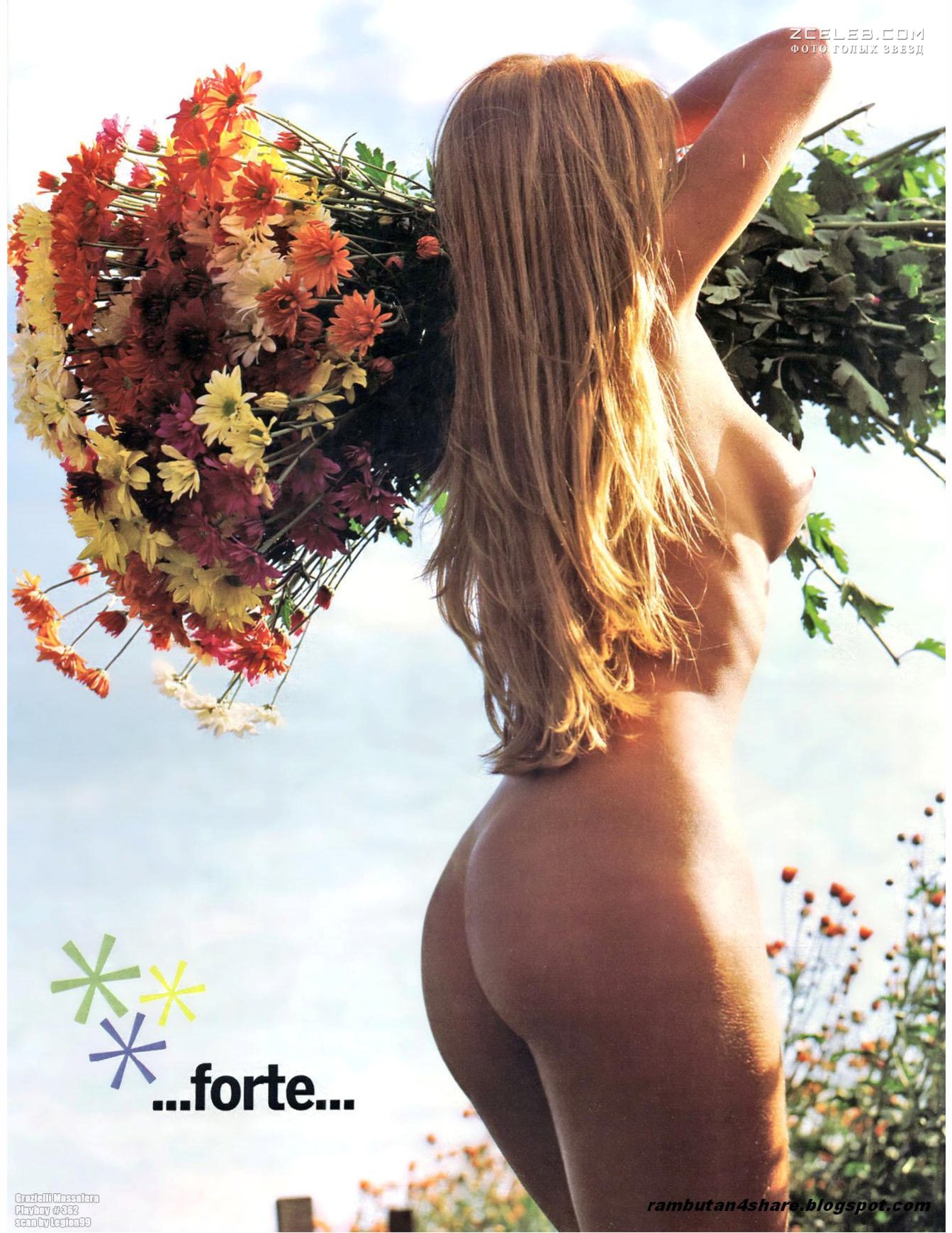 Сексуальная Граци Массафера полностью обнажилась в бразильском журнале Playboy в августе 2005 года. Красотка такая же милая и нежная, как кролик у неё в руках. Такая же вкусная, как шоколад, который она соблазнительно перемешивает. Такая привлекательная, как цветочки, к которым она склоняется своим аппетитном бюстом.