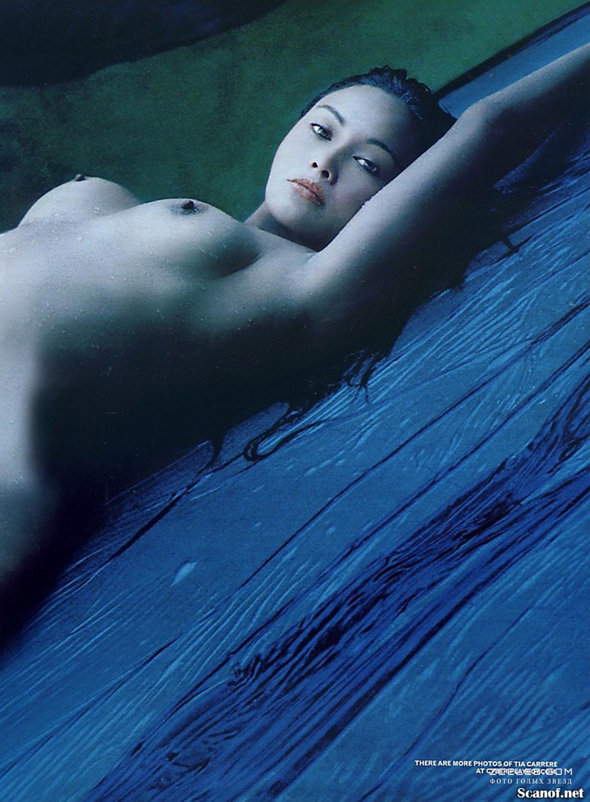 Обнажённая Тиа Каррере в чувственном образе для американского выпуска журнала Playboy в январе 2003 года. Красотка с кожей бронзового цвета особенно эротично смотрится в обстановке с приглушённым светом.